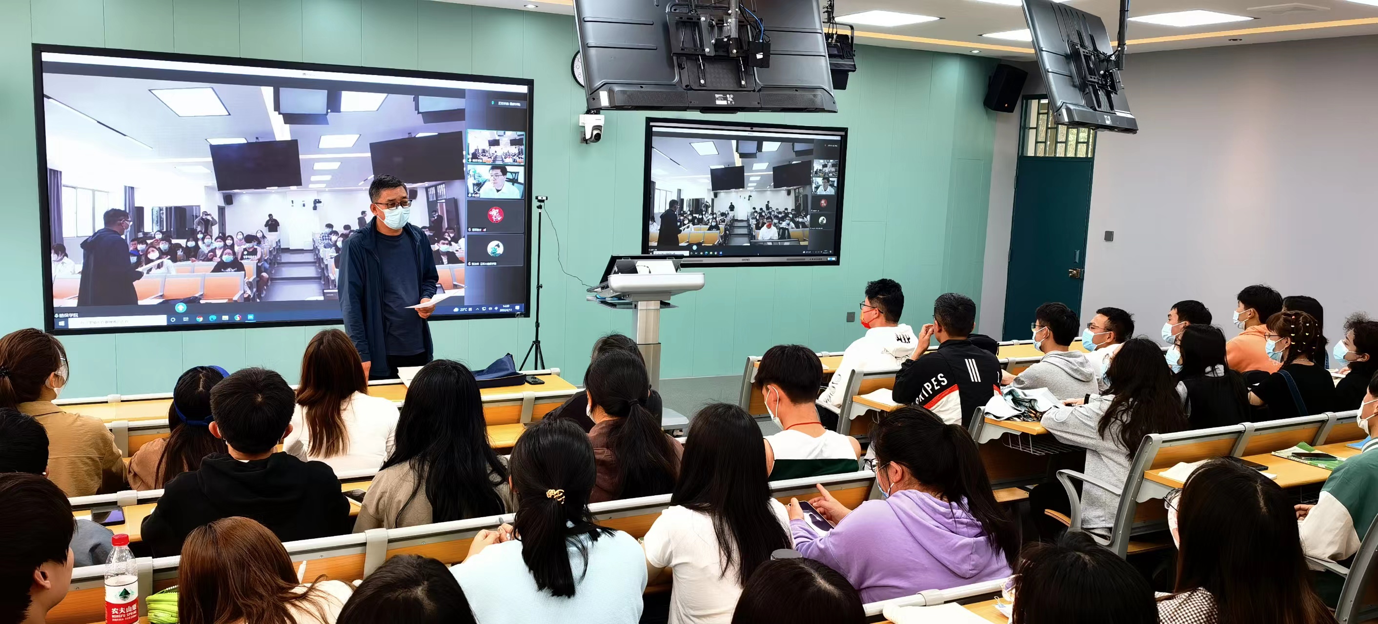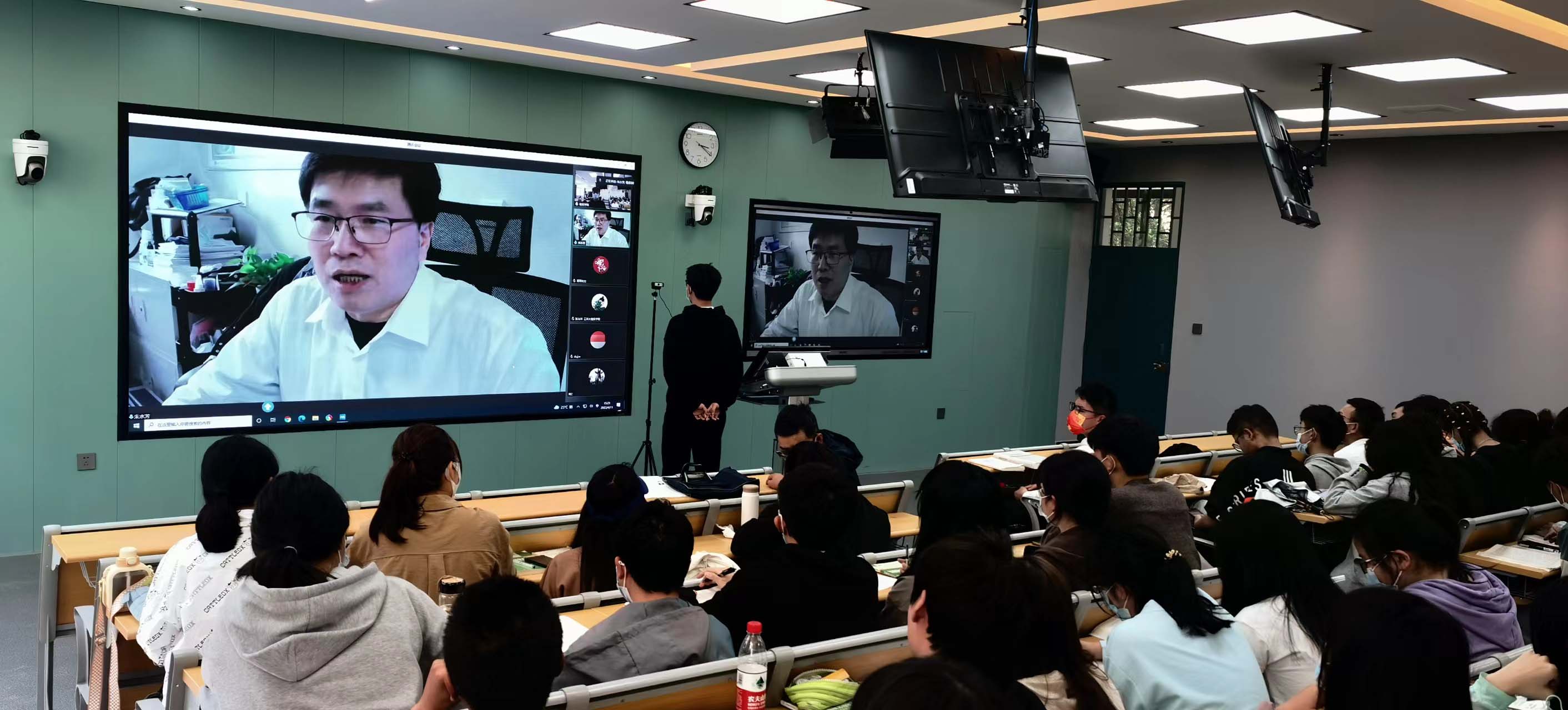 2022年4月11日下午6-7节课,yl8cc永利外聘教师中国检验检疫科学研究院的首席科学家朱水芳研究员在线为2020级动植物检疫专业的同学讲授《植物检验检疫法规》的部分内容。学院专业负责人和部分教师在智慧教室或通过腾讯会议聆听了名师讲授。同学们在学校养正楼B101互动教室集体听取了朱老师深入浅出的讲解。