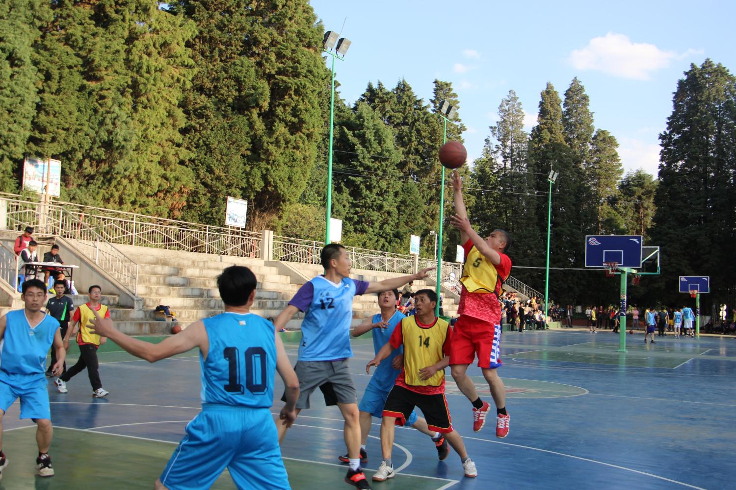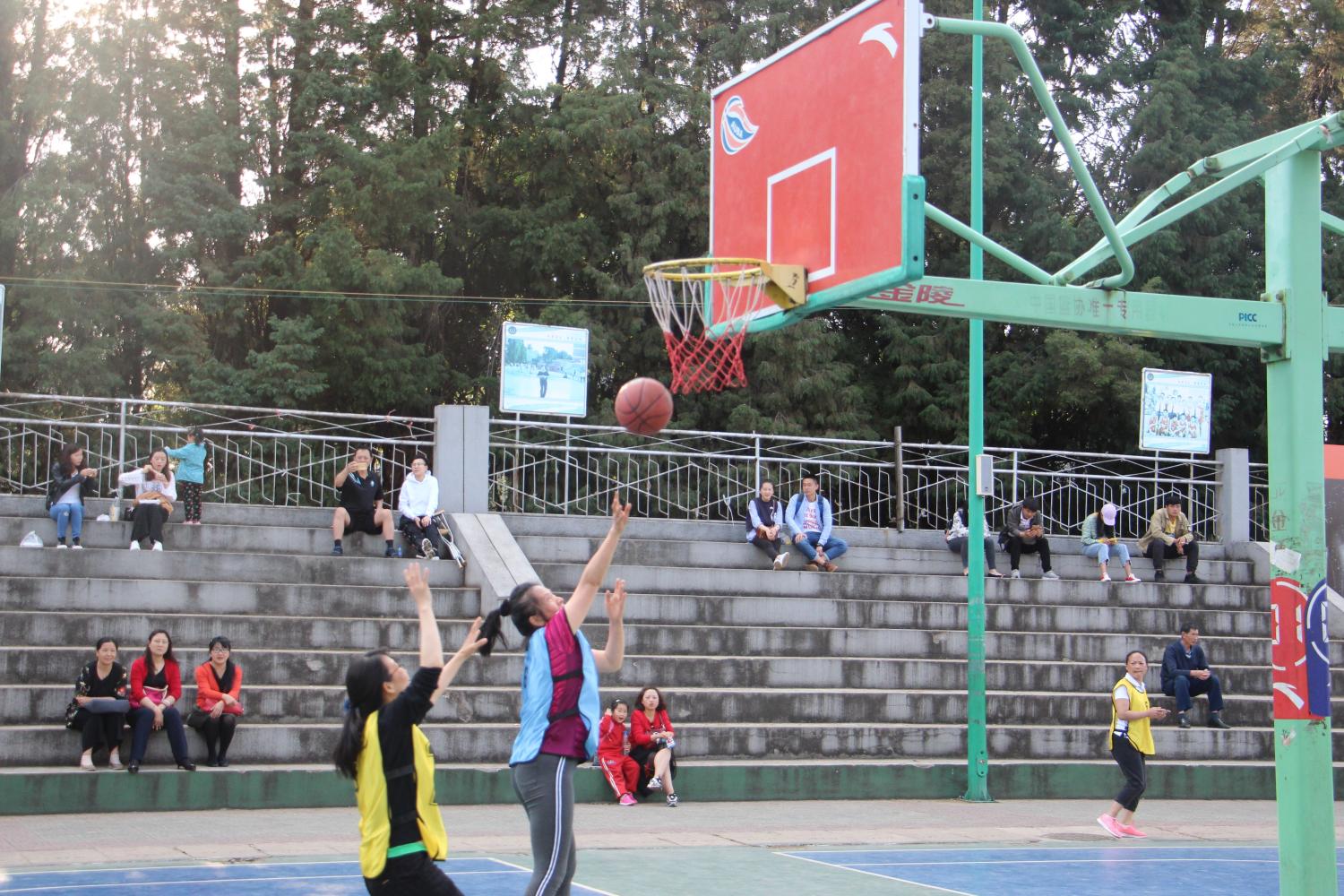 篮球场上,参加比赛的老师跑位用心、配合默契,展示了较强的实力。队员们个个拼抢用心,动作连贯,配合默契,投篮准确,气氛紧张热烈,赢得了场外师生的一阵阵喝彩。裁判们本着公平公正的原则,以严谨的态度去裁判,在场同学用呐喊声表达了他们的情感。炎炎烈日依然挡不住运动员们的激情,男老师英姿飒爽,女老师更是巾帼不让须眉,展现了他们拼搏进取的精神风貌。运动员们都共同发扬了“友谊第一、比赛第二”的精神,场上激烈争夺,场下握手言欢,充分展现了“团结进取、奋勇拼搏”的文化精神。全体工作人员爱岗奉献,使得每场赛事都非常的激烈、精彩,赛出了水平,赛出了风格,使此次篮球赛取得了圆满的成功。