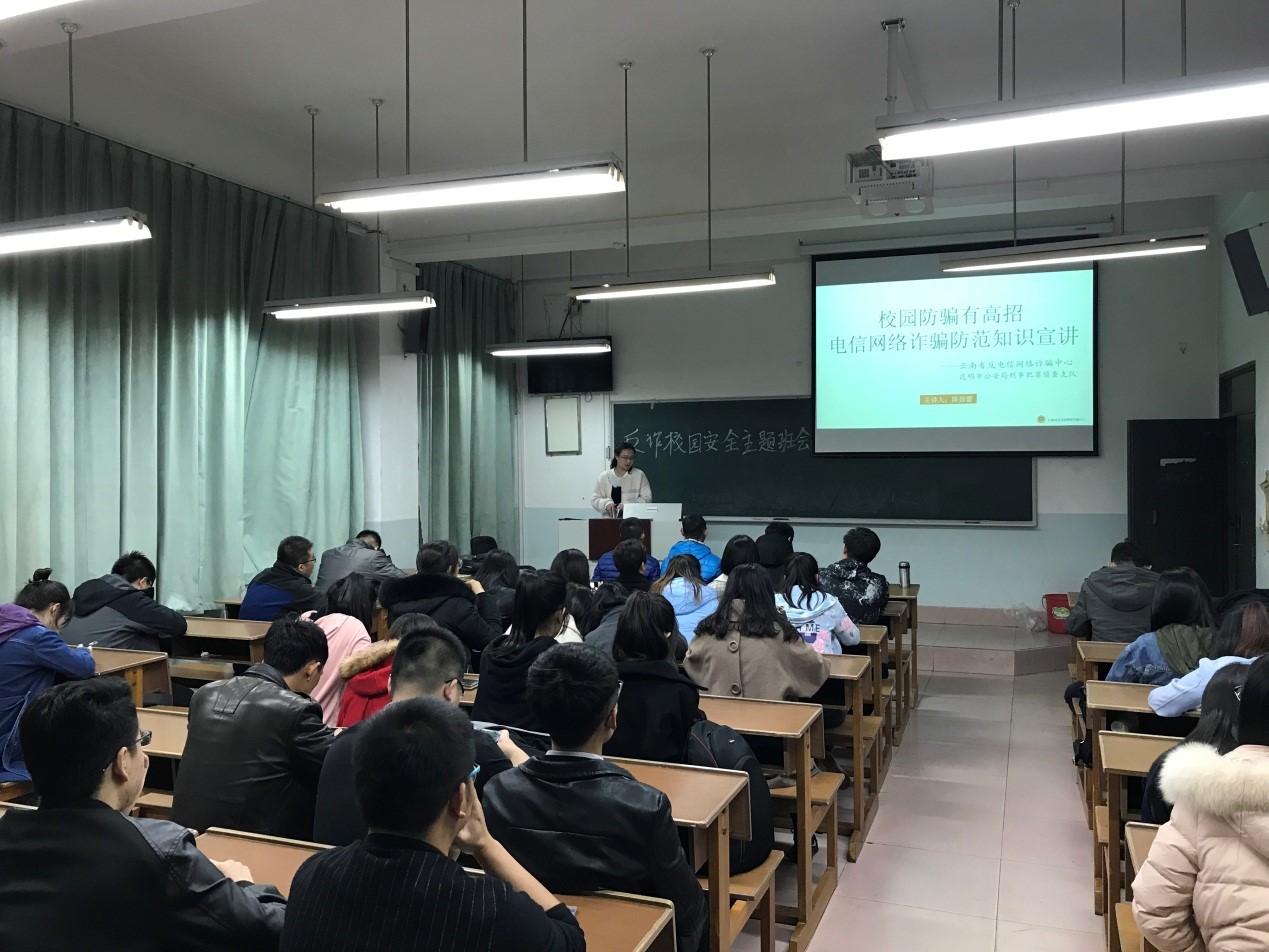 为推进平安校园建设系列工作,努力创建“无诈校园”,加大公司电信诈骗防范教育宣传工作力度,引导广老员工了解防范诈骗知识,提高识骗防骗能力,最大限度的减少电信网络诈骗案件的发生,本周公司各班在班主任的带领下开展了主题为“防范电信诈骗,共建平安云南”暨“无诈校园”主题班会。