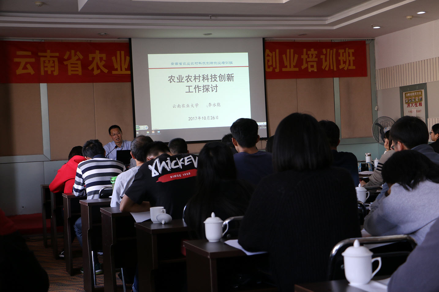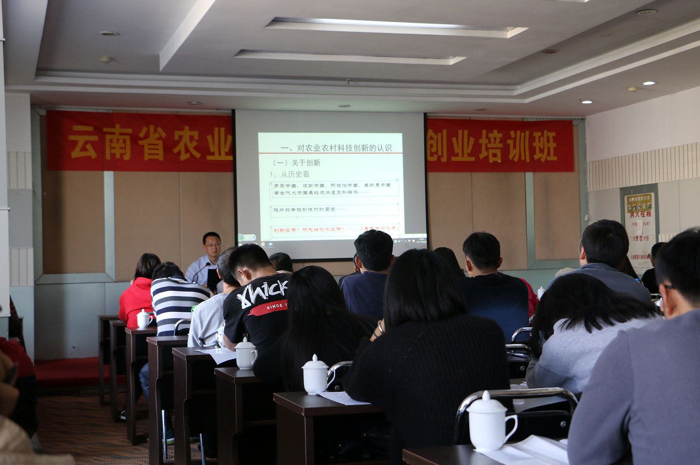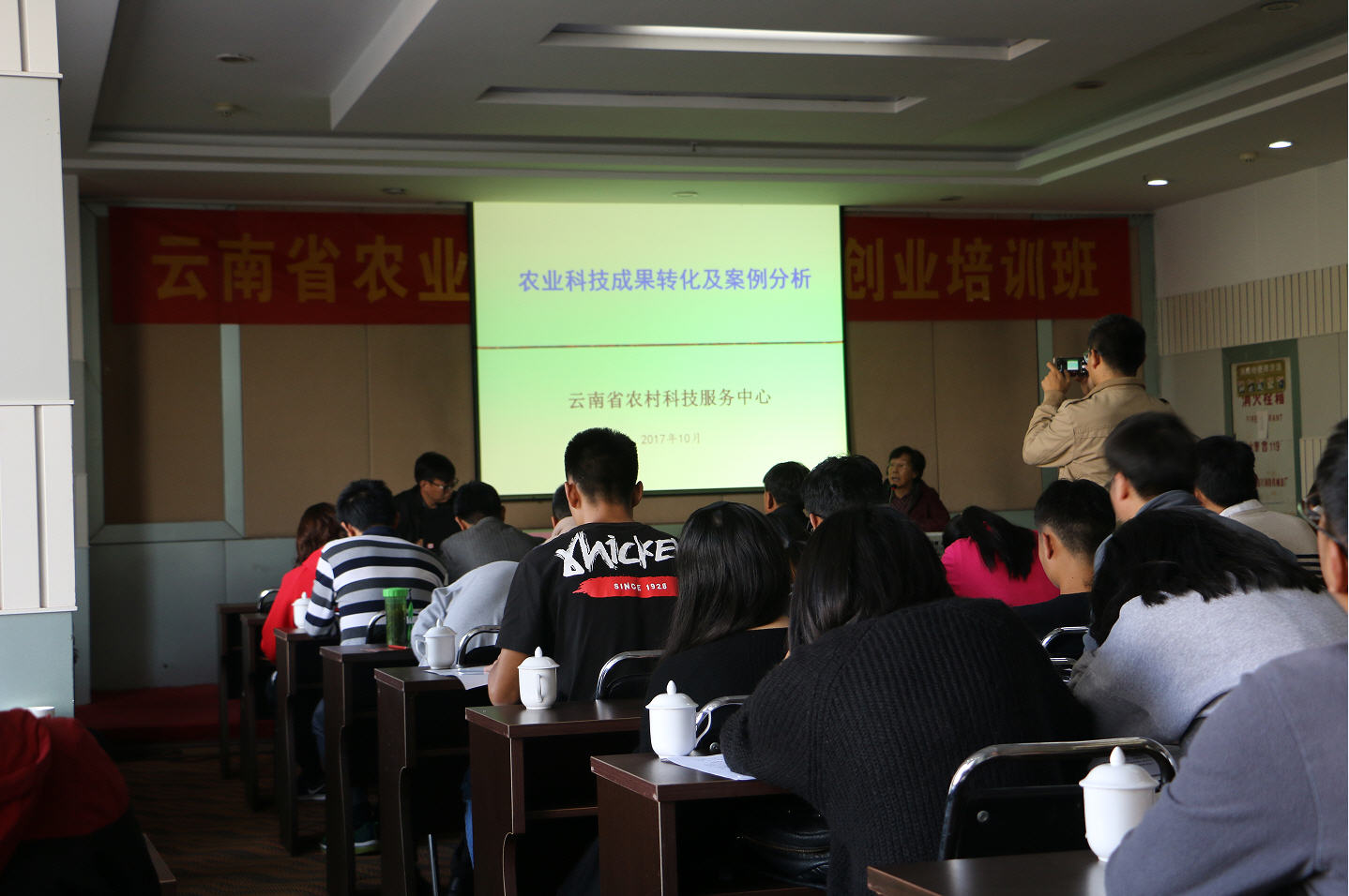 在党的十九大胜利召开之际,为深入解读党中央、国务院关于农业农村科技工作和创新创业的扶持政策,增强社会及青年大学毕业生的创新意识和创业能力,促进农业科技成果转化和青年创业,10月26~27日,为期两天的云南省农业农村科技创新创业培训班在云南省科技厅国家星火培训基地举行,本次培训由云南省科技厅农村科技处主办,农业农村科技协会协办。在科技处科技推广科董文汉老师的联系接洽下yl8cc永利组织同学作为yl8cc永利会员中心员工代表,在陈齐斌副书记的带领下与科技处、人才招聘处相关负责人一同参加了此次培训。培训班上,云南省科技厅农村科技处李佳副处长、云南省农业科学院科技处方成刚副研究员、yl8cc永利会员中心党委宣传部李永能部长、云南省农村技术服务中心李德轩主任、云南省委农办综合处处长晏铃研究员五位专家紧紧围绕农业农村科技创新创业工作推进,从云南省“十三五”科技创新规划、“三农”发展重点、农业农村科技创新创业、农业科技工作思路与部署、农业科技成果转化及案例分析等方面进行了专题讲解。云南省农业科技研究院花卉研究所国家观赏园艺工程技术中心、中国科学院昆明植物研究所、yl8cc永利会员中心人才招聘处三个单位代表分别围绕各单位实际,从“双创”生态构建、科技成果转化、产业扶贫、创新创业人才培养等方面进行了交流报告。本次培训课程内容丰富,专家们从不同层面就农业农村科技创新创业工作国家政策、各方面现状进行了认真解读,全省各地州到会代表也就全省各地农村农业创新创业情况展开真诚分享。同学们纷纷表示,本次培训让大家系统全面了解了云南农村农业发展与科技转化及相关创新创业政策,为同学们今后学农爱农并积极投身农业科技创新创业提供指导。