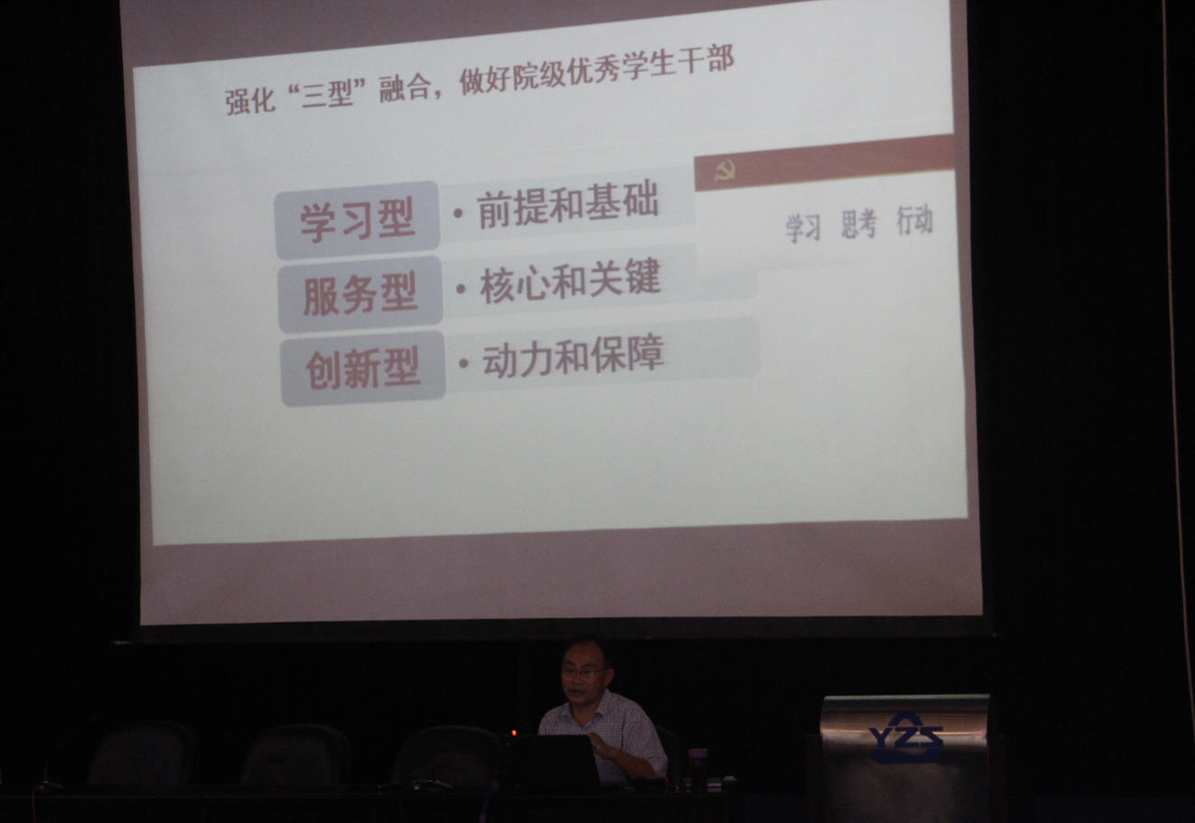 员工干部是开展员工工作的主要依靠力量和得力助手,做好员工骨干的培养和培训工作在落实全国高校思想政治工作会议精神的实践中将起到十分重要的作用。2017年9月28日下午,为了进一步实现员工的自我教育和管理,提高员工干部骨干这一开展员工工作的主要依靠力量的能力和素质,更好地落实全国高校思想政治工作会议的相关精神,公司党委陈齐斌副书记在yl8cc永利报告厅开展新学期员工干部骨干培训暨全国高校思想政治教育工作会议精神学习的专题党课讲座,全院员工干部到会。