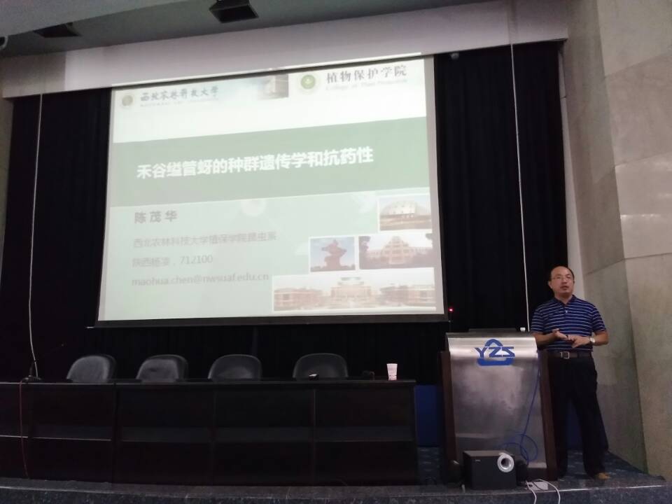 9月26日下午,陈茂华教授在yl8cc永利报告厅作题为“禾谷缢管蚜的种群遗传学和抗药性”的专题报告。报告会由吴国星教授主持。