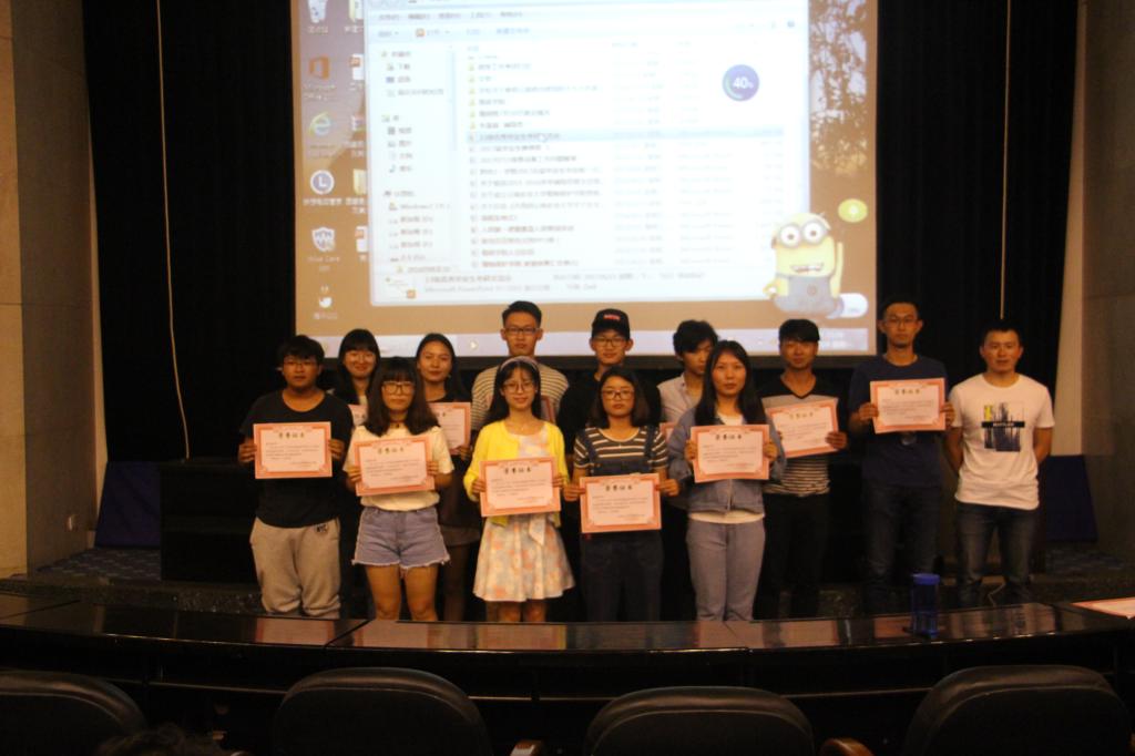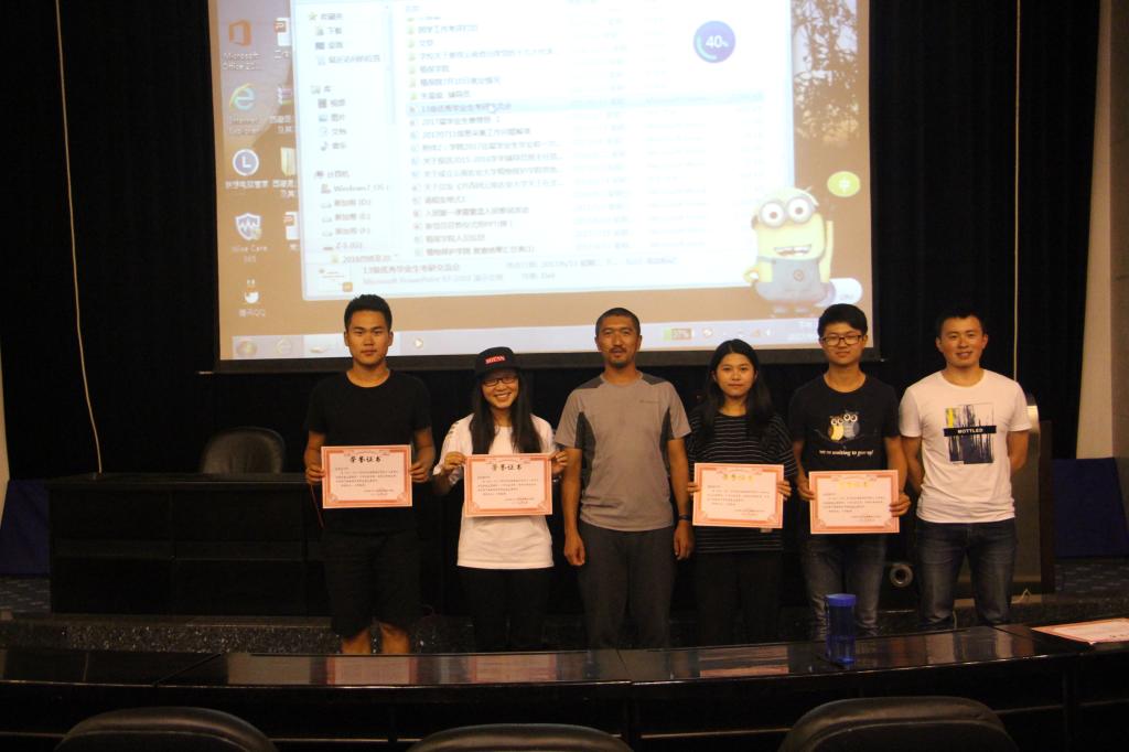 接下来,为树立典型、表彰先进,大会表彰了荣获“优秀主席”、“优秀干部”、“优秀干事”、“优秀部门”的同学们。他们工作认真,做事严谨;他们热爱读书,学习刻苦;他们勤于思考,积极向上,他们起到了模范带头作用,是同学们学习的榜样。张晓明老师和张帅老师为获奖的同学们颁发了奖状。