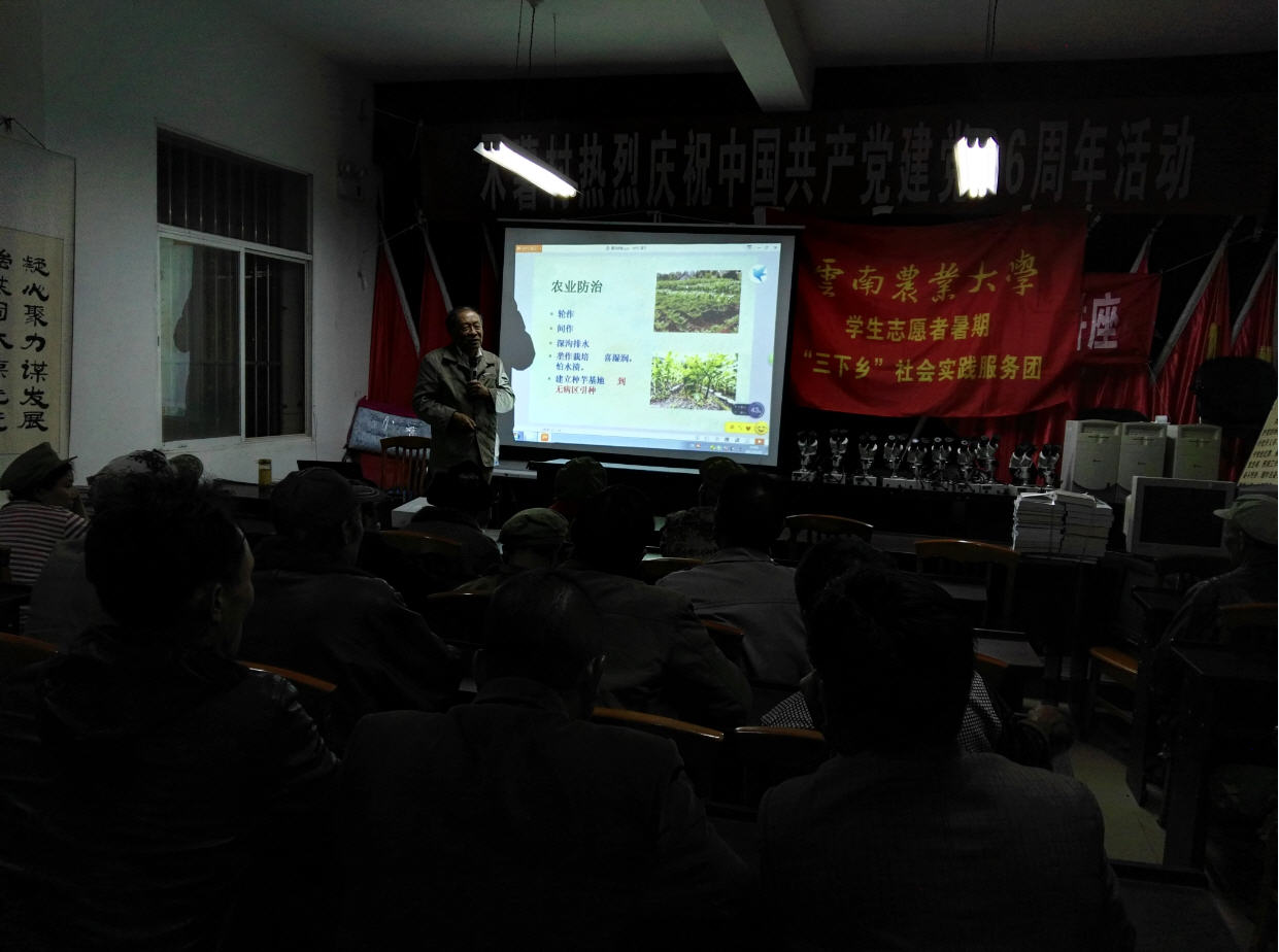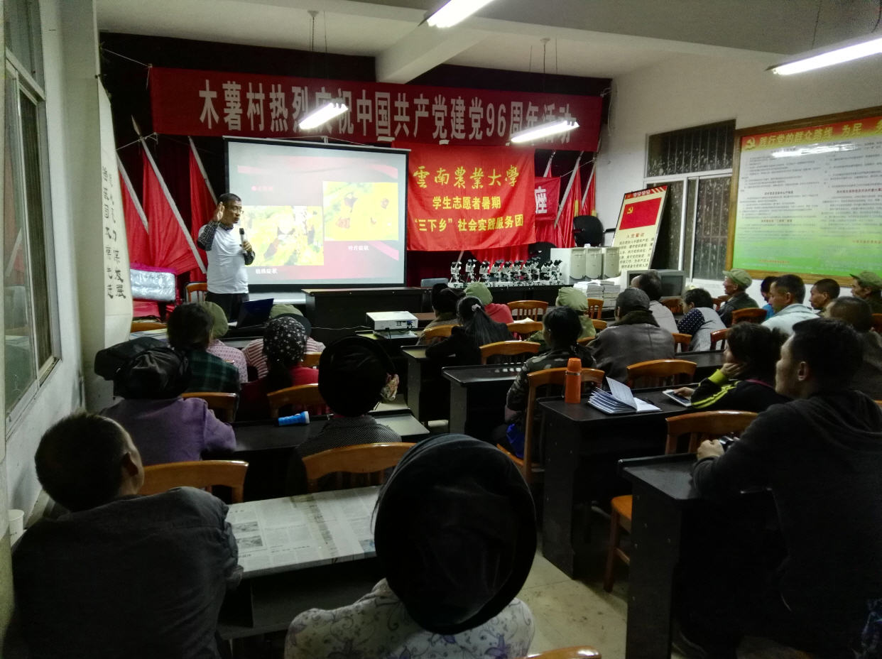 结合学校的精准帮扶工作,本次实践服务活动,团队向基层群众发放农业科技资料,向山区捐赠实用农业科技书籍建设科技文化书屋,同时向水碓窝村通过支部共建赠送音响一套,促进村级文化生活及该村党建文化宣传;还向基层困难群众捐赠爱心衣物、鞋子、棉被;向贫困家庭及留守儿童赠送书包,铅笔,文具,笔记本及作业册、电脑;向木薯小学及基层农业合作社及农业技术服务部门,捐赠了员工科普以及农业技术服务部门农业有害生物鉴定与检疫用生物显微镜和解剖镜。同时学院师生深入田间地头进行农业种植情况现场察看与病虫害诊断,并为群众田间现场技术指导与相关问题咨询解答。在师生白天调研察看基础上,利用晚上召集村民开展“农业有害生物科学种植与病虫害综合治理”专题培训讲座,针对农业产业脱贫,当地已经或正计划大力发展的魔芋、大蒜、烤烟、蔬菜、中药材进行专题科技培训。同时,师生为村民进行文艺慰问演出。由于下雨道路不通,志愿团队在木薯村书记和公司精准扶贫驻村干部老师的带领下,整整一天来回徒步近25公里翻山越岭到距木薯村委会最偏远的石碓窝村走访慰问那里的群众。通过现场走访和真实的道路和生活体验,尤其是同学们从贫困群众了解到短短的两年多的时间里,国家各级部门真心关心他们的生产和生活,千方百计为他们为他们生活的改善努力付出,在观念转变、技术扶持、产业脱贫、移民搬迁、基础设施建设等一系列真实的民生工程,给他们的生产与生活带来诸多实惠,对党的政策充满感激,对未来生活充满希望。公司作为省级“挂包帮“对口帮扶单位,全校上下两年多来为该村脱贫致富做了大量精准帮扶,全村群众对农大满怀感情,充满了感激之情。通过实践体验,同学们真真切切体会到习近平总书记提出全国贫困地区实行精准扶贫的战略意义;并感到作为农大学子的自豪感和学好专业报效社会的强大使命感。