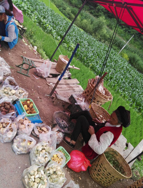 楚雄全州良好的生态环境与森林覆盖率,团队实践期间正是雨季,一路上随处可见在出售食用野生菌的真确感受云南生物资源王国,野生菌王国等美称的内涵。