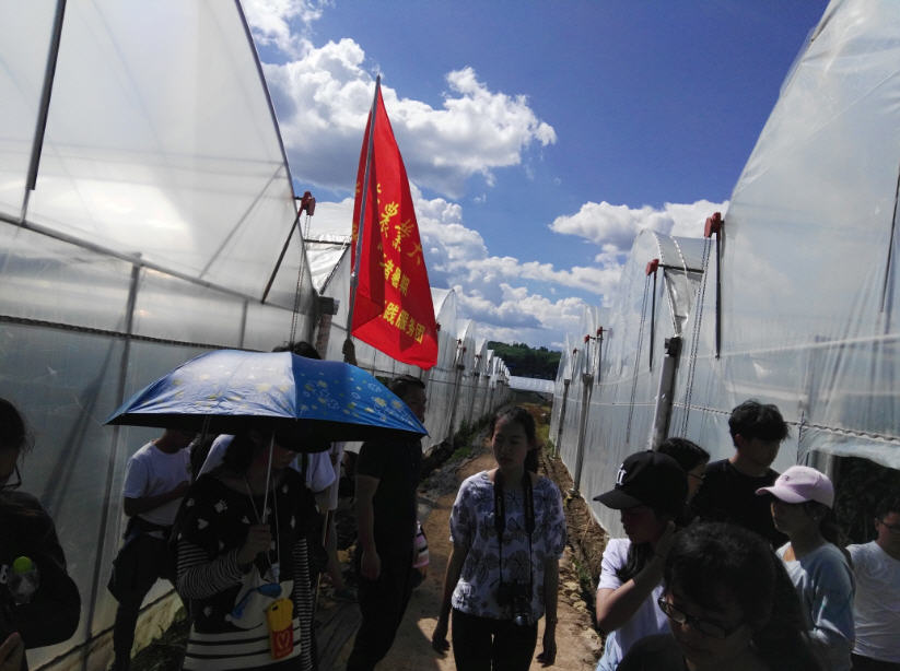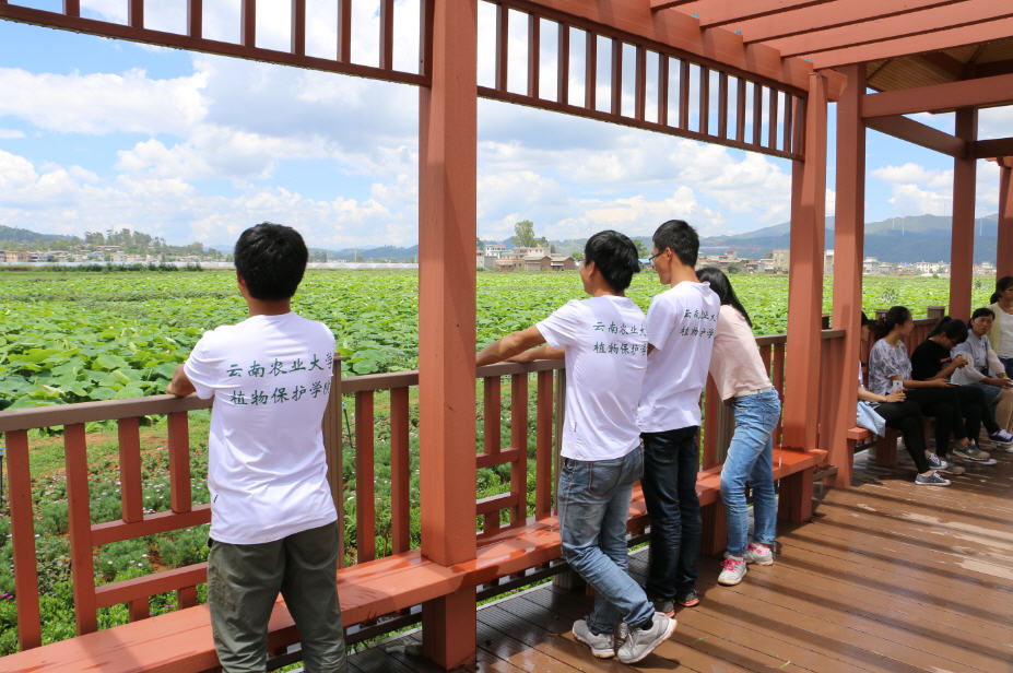 在山区志愿服务和真确体验农村贫困状况和产业扶贫进展以及公司在前场镇木薯村精准扶贫情况同时,团队还到姚安县坝区和与姚安毗邻的大姚县进行农业产业化和现代农业发展的调研,通过考察蔬菜基地、蓝梅基地、石榴基地、玫瑰花基地、蚕桑基地、水稻基地、马铃薯基地、烤烟基地、核桃基地、中药材基地、千亩连片荷花与光禄古镇历史文化挖掘等观光休闲农业综合考察,以及校企联合科技成果——植保无人机基层服务应用观摩,师生深刻体会到当前农业发展的新动向、新趋势和新机遇。同时师生还瞻仰当地革命烈士纪念碑和解放战争以及军民团结和民族团结和自治的石雕,感受和平的珍贵和军民融合、民族团结共同发展的重要性。