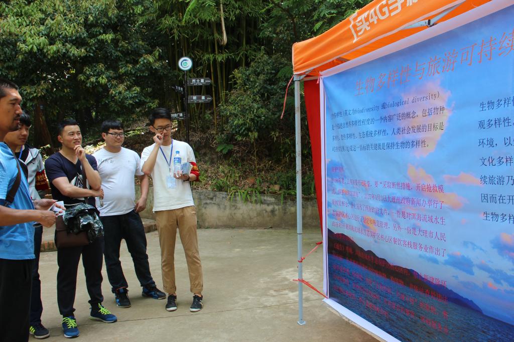 今年的科普宣传活动在离yl8cc永利会员中心最近的盘龙区黑龙潭公园进行。宣传的知识涉及生物多样性及相关知识,及森林生物多样性、云南自然保护区大围山生物多样性现状及面临的挑战、生物多样性与粮食安全、产业发展状况等。游客们被精美的图片吸引,纷纷驻足观看,志愿者们认真的给他们讲解着生物多样性方面的知识,场面热闹。