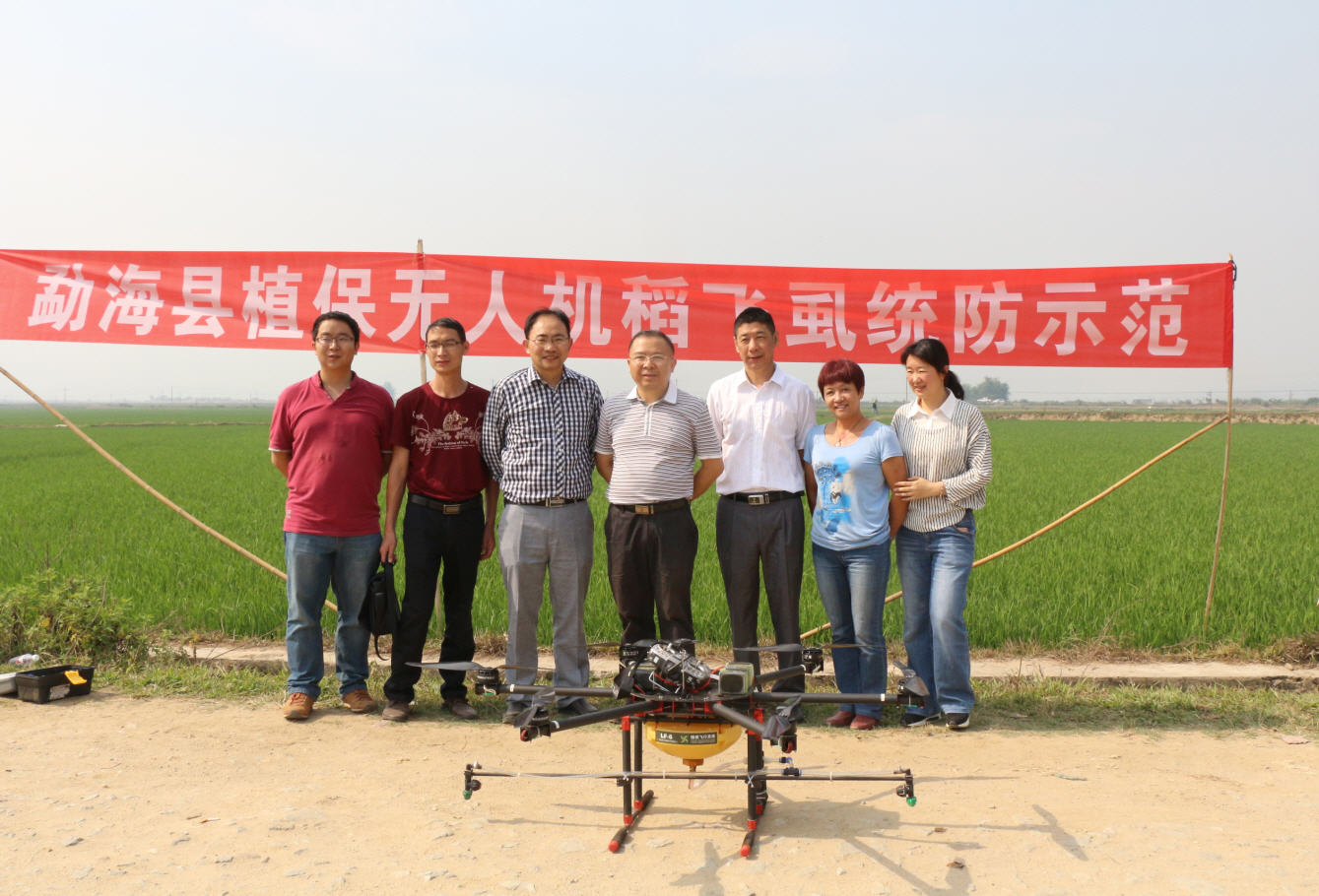 为把学院实用科技成果应用到生产上服务地方农业生产,推动地方集约化和农业现代化发展,公司党委号召公司党员教师认真贯彻“两学一做”,发挥党员先进性,结合专业力所能及服务社会,为民办实事。在此指导下,2016年4月20-23日,结合农业生产实际情况,yl8cc永利陈齐斌副书记带队到勐海县开展植保无人机应用示范服务和现场培训推广。该项技术是与云南绿飞农业科技有限公司共同合作开发的农业新型高效实用技术。yl8cc永利为该项技术的应用提供植保技术支撑,前期已经进行大量技术研究和实用转化攻关,在云南基层完成了数万亩实践作业,并在实践中不断改进和性能优化,目前该技术已经逐渐成熟,可为云南基层集约化农业发展和农业扶贫攻坚等发挥积极作用。2016年3月在公司举办的全省农业科技成果转化大会上,该项技术作为公司的一个代表性农业实用科技成果进行重点推介展示,得到社会广泛关注。