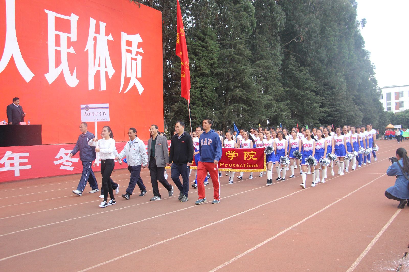 在寒意渐晾的11月底,yl8cc永利会员中心冬季运动会在校园中隆重举行。11月25日上午在东校区运动场举行开幕式。
