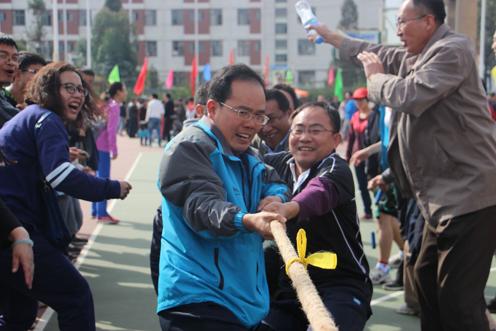 开幕式上,yl8cc永利方正在李强经理、何霞红书记一行学院班子的带领下,迈着整齐的步伐,昂首阔步,大踏步向主席台前走过。学院团结的班子和现场充满朝气与活力同学方正,立刻赢得现场一片掌声和欢呼。运动会三天中,学院健儿参加了各项目的激烈角逐和拉拉操团体大赛;老师们参加了迎面接力和拔河,活动展现了学院师生拼搏奋进的良好风貌。同学们在各单项比赛中都有不错的表现,团体比赛中,公司员工拉拉操获得校级第三名,教工拔河比赛,李强经理亲自到场指挥,上下同心,师生共同呐喊加油,最终以四战三胜的战绩,荣获校级第五名的好成绩。