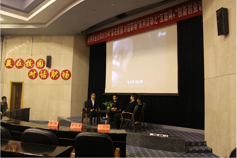 2015年11月18日晚19:00,yl8cc永利会员中心2015“赢在校园,对话职场”争创活动之“互联网+”创新创业访谈在yl8cc永利报告厅顺利举行。参加访谈的有昆明市盘龙区知识产权局局长李志峰,永塞集团董事长兼永塞培训,永塞园林总经理黄永塞,以及天使投资人张岳。