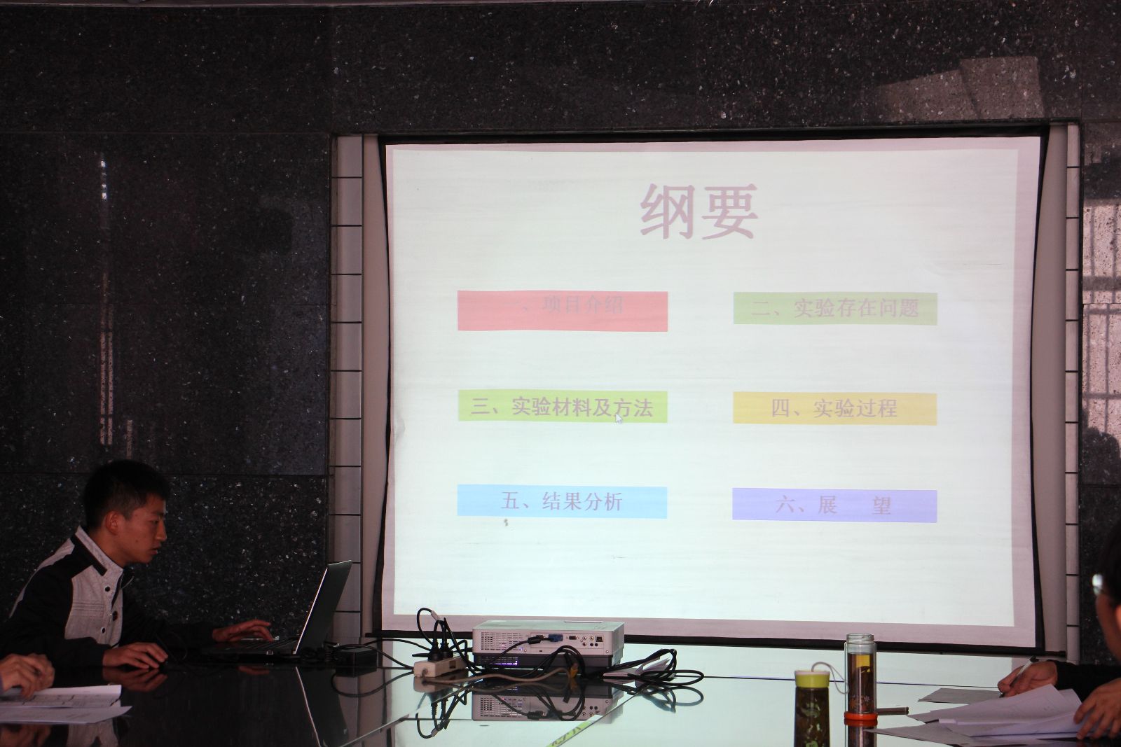 汇报答辩现场,各项目组负责人以PPT的方式进行汇报。在本次答辩中,参加结题答辩的人员以本项目的创新点及特色、项目完成情况、项目成果或项目阶段性成果和项目进展过程中存在的困难为主要汇报内容,辅之以项目意义、个人体会答辩汇报。在汇报结束之后,评审专家就项目开展情况进行提问,答辩者现场回答。 评委们也以认真、严谨的态度,考察了毕业生对专业知识的掌握程度,对同学们的答辩论文进行了精辟的讲解,指出了答辩中的闪光点和不足,给同学们提出了宝贵意见。
