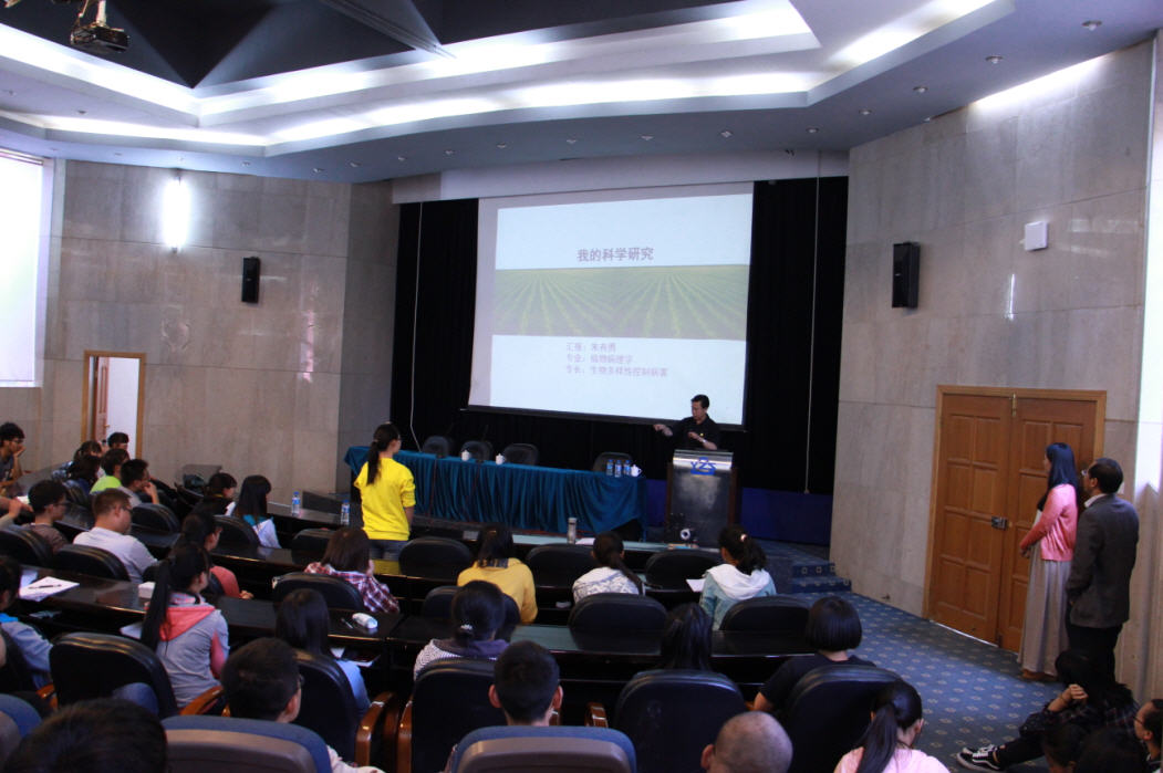讲座后院士让大家提问,同学们就科研进展、农业发展、植保学科及毕业生就业前景等纷纷向院士询问,尽管一些问题有些稚嫩,但院士一直面带微笑专心聆听,并一一给以耐心解答,每一个提问同学都得到院士的肯定与赞许。同学们倍感院士的平易近人与和蔼可亲。听后同学们大大增强了学农爱农的决心。