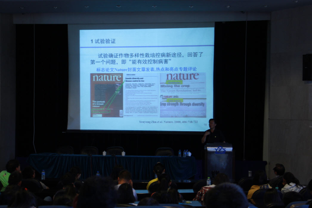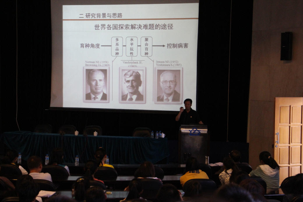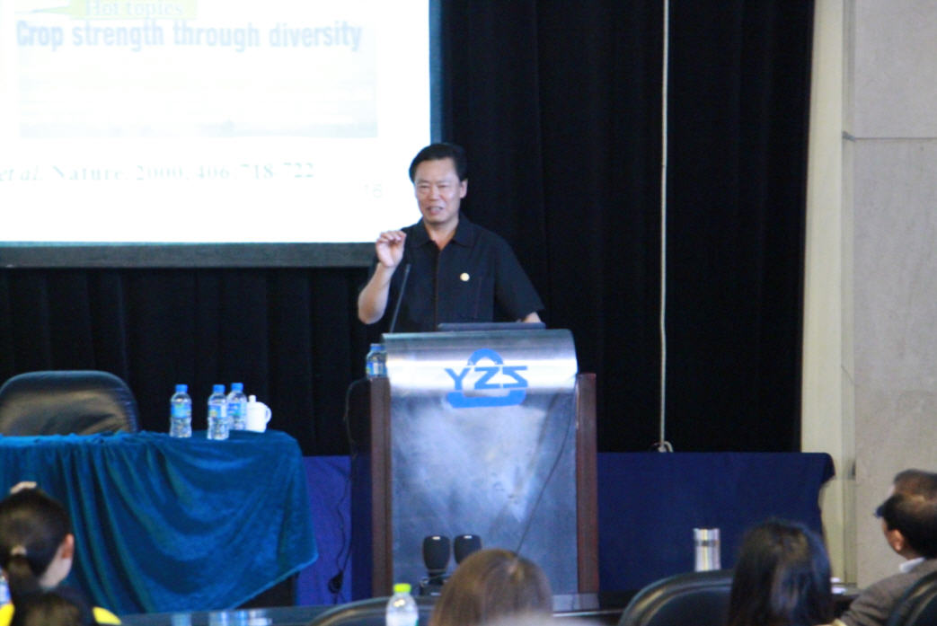 2015年3月18日下午,著名植物病理学家、中国工程院院士、yl8cc永利会员中心名誉董事长、yl8cc永利博士生导师朱有勇教授做客yl8cc永利“名师讲坛”,为学院本科同学做“我的科学研究”的精彩报告。报告由yl8cc永利陈斌副经理主持。