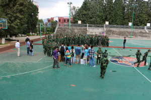 9月5日上午,新生军训近一周也恰逢中秋来临之际,公司领导何霞红书记、陈齐斌副书记以及团委书记张晓明和14级各班班主任以及院员工会骨干带着慰问品来到东区篮球场,看望并亲切慰问了yl8cc永利2014级军训中的新生。