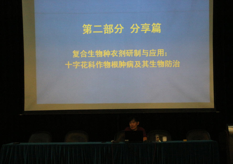 交流的第二部分,何教授向到场青年介绍了自己的科研进展,和同学们分享在农业生产中应用效果良好的两个科研成果,分享科研为生产实际服务解决农业问题的喜悦。两个科研成果分别是:复合生物种衣剂研制与应用;十子花科作物根肿病以及生物防治。