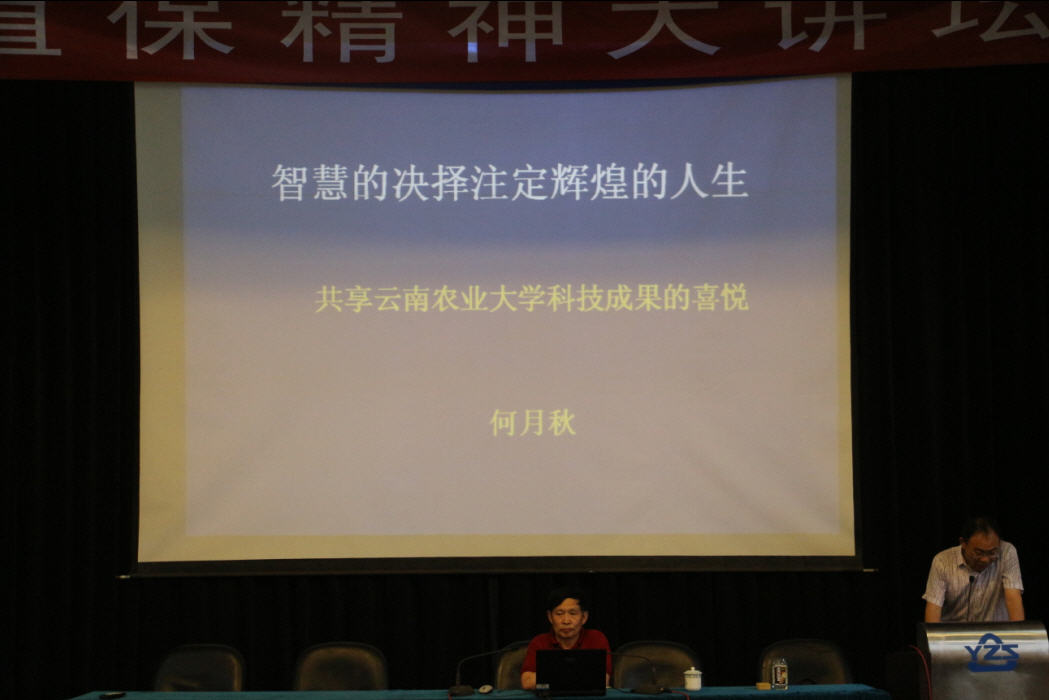2014年5月29日晚,yl8cc永利会员中心教学名师、十字花科作物根肿病国际著名专家、国家“863”计划项目首席专家、农业部公益性行业(农业)专项首席专家、云南省政府从国外引进的高端人才、yl8cc永利会员中心“员工最喜爱的老师”等荣誉获得者、博士生导师、yl8cc永利会员中心二级教授——何月秋教授,应邀做客yl8cc永利第七期“植保精神大讲坛”在yl8cc永利报告厅和yl8cc永利青年员工骨干和年轻教师进行讲座交流,公司党委副书记陈齐斌副教授到场主持。