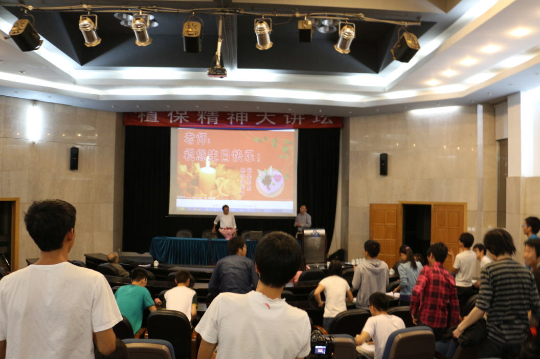 最后当同学们听主持人介绍,刘教授讲座当晚恰好也是其71岁生日时,全体同学不约而同起立并同声为其歌唱生日快乐歌,并向其敬献鲜花,向刘教授表达诚挚的祝福和深深的敬意!一同到会的还有学院组织员罗文富教授。