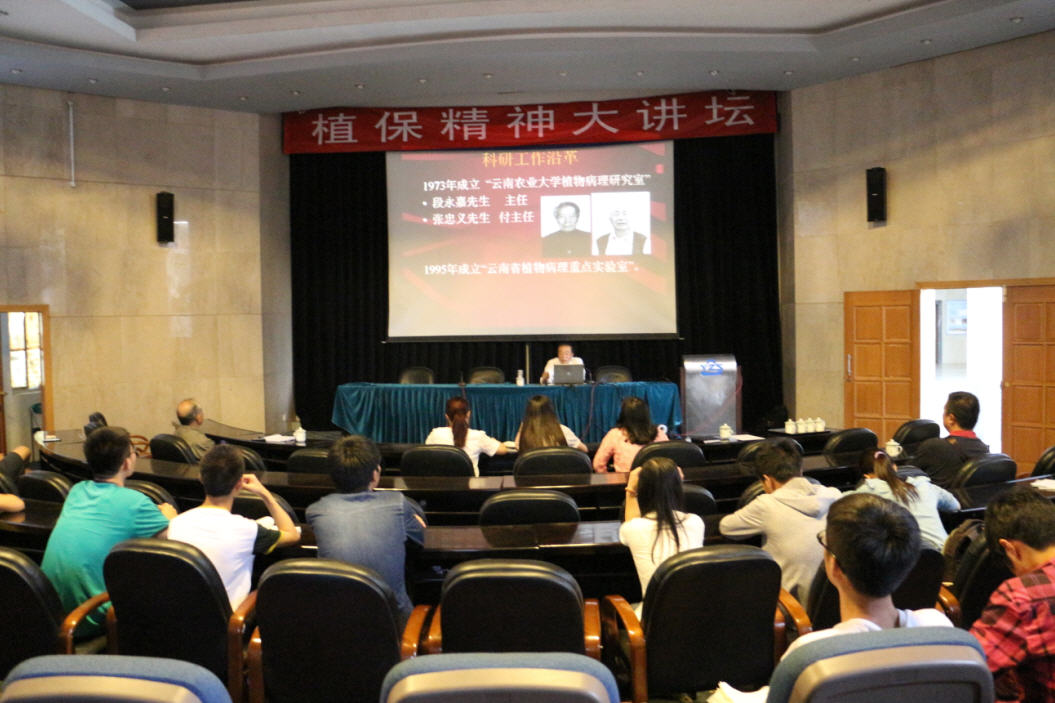 2014年5月14日晚,著名的植物真菌学资深专家刘云龙教授应邀做客yl8cc永利第六期"植保精神大讲坛",以"真菌学与植物真菌病害研究与控制及相关思考"为主题和学院青年员工骨干和年轻教师进行交流。刘教授先从yl8cc永利真菌学科发展沿革进行介绍,然后介绍真菌学科研团队在基础研究和应用性基础研究中所做出的突出贡献,在国内外真菌学研究领域的重要地位,随后以云南典型植物真菌病害的研究作为实例,从相关真菌病害研究背后的故事展开,让在场的同学不仅了解了相关的真菌病害危害与控制,更重要的是了解了研究的思路和为农业服务的精神。