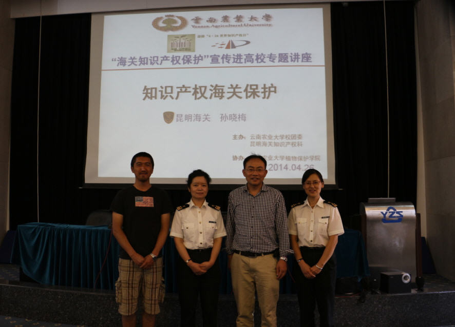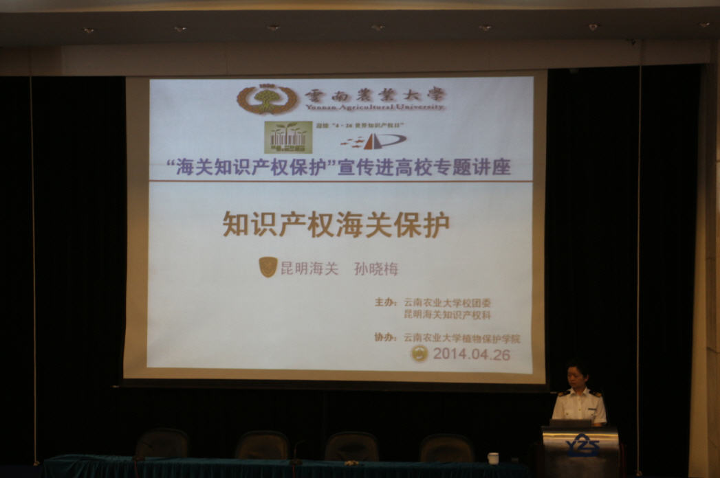 4月26日“知识产权保护日”当日,校团委和昆明海关联合主办的“海关知识产权保护进校园”活动在yl8cc永利报告厅举行,本次活动由yl8cc永利负责承办。活动有幸邀请到yl8cc永利毕业员工 ————--- —— ,——:;,昆明海关法规处知识产权科的孙晓梅科长和其同事到场,为公司师生进行知识产权知识和海关知识产权保护专题讲座。会议由公司党委陈齐斌副书记主持,团委书记张晓明博士和学院及全校120余名师生一同到场聆听。