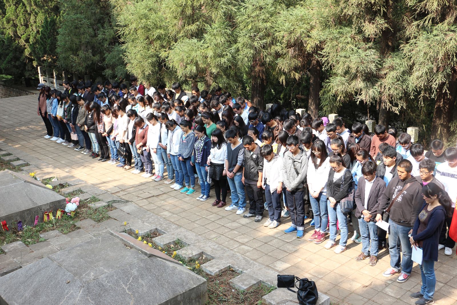 4月5日上午8点半, 在yl8cc永利前,公司党、团员代表和员工会参与活动的同学们怀着对烈士无限崇敬的心情整装待发。在团委老师的带领下,同学们怀着庄严崇敬的心情,来到了黑龙潭。踏入烈士墓园,沉重庄严的气氛笼罩着大家,在老师的带领下,同学们有条不紊地陆续来到扫墓指定地点参与此次扫墓活动。 首先,由我学院张老师宣读誓词,誓词在革命先烈纪念碑前久久地回荡,活动在浓烈的爱国氛围中拉开了序幕。同学们怀着沉重悼念的心情为烈士们献上花圈,并向烈士们深深弯腰鞠躬表示沉痛的哀悼。紧接着,同学们秩序井然地参观了烈士墓。在一个个的墓碑前,同学们纷纷驻足观望、默哀。虽心中感叹万分,但此时却无声胜有声。我们用献花、默哀最传统的方式向为革命而牺牲的烈士表达那无限崇高的敬意和哀思。
