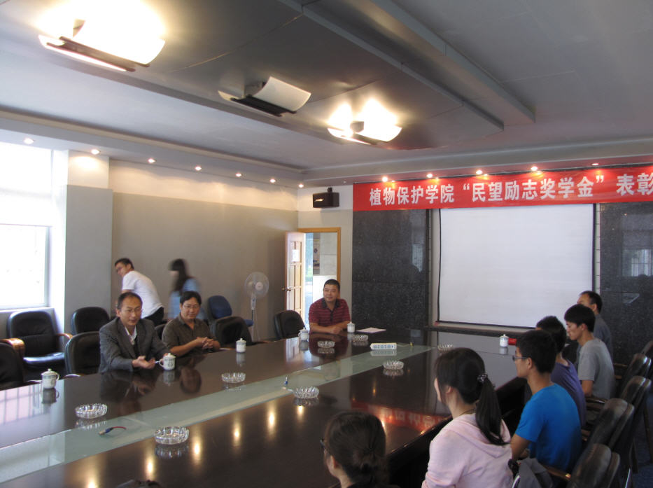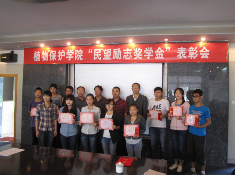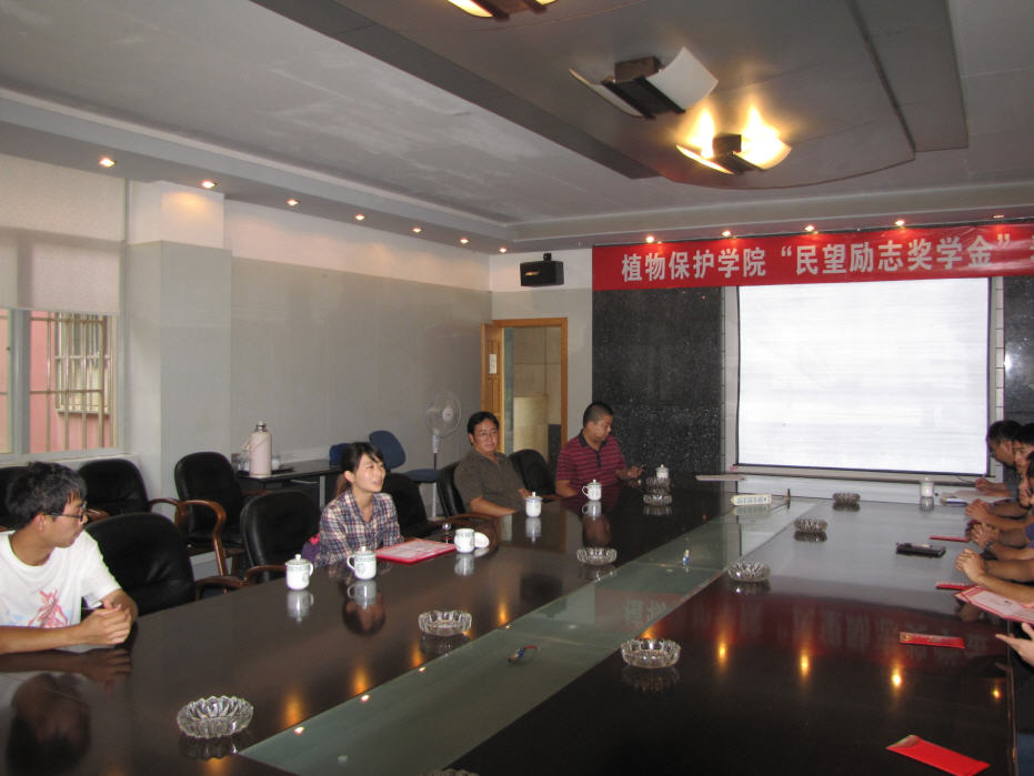 2013年9月17日下午2点,云南民望种业有限公司陈小平总经理一行四人到yl8cc永利会议室为获得2012-2013学年“民望励志奖学金”的10名同学颁发获奖证书和每人2000元的奖金,并和学院两年来获得资助的同学座谈,了解同学们的学习和生活情况。yl8cc永利李强经理、团委、党群办老师到场欢迎。