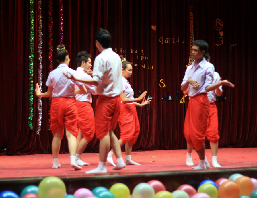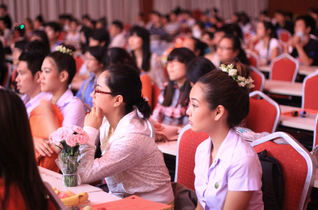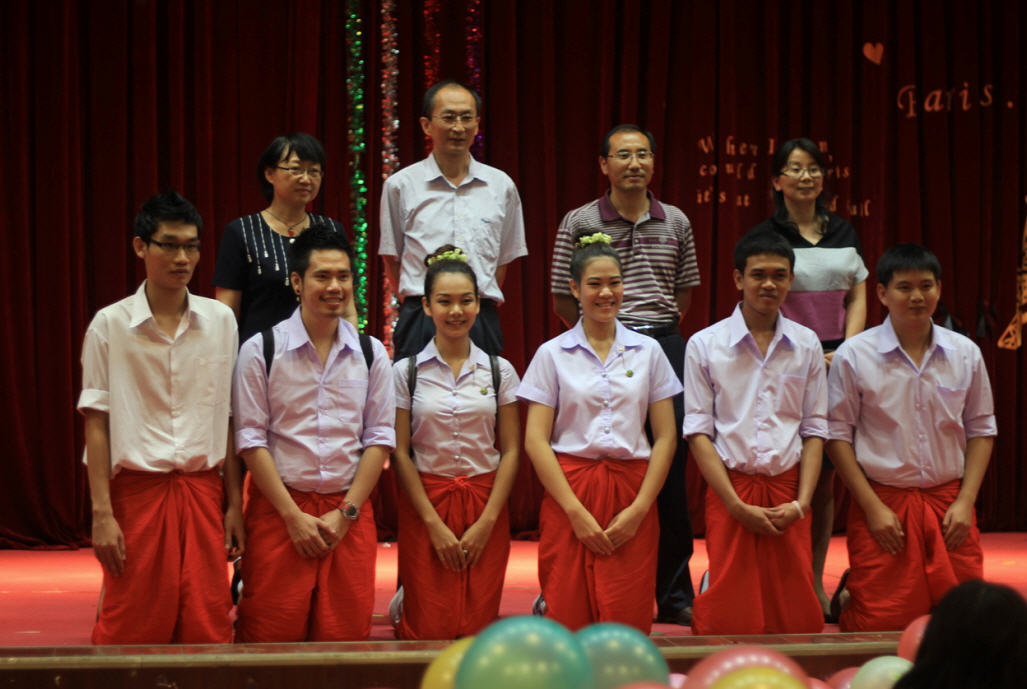 伴随着浓郁泰国民族风情的动听音乐,正在yl8cc永利交流学习的六位泰国职工翩翩起舞,反映祭祀祈福内容的舞蹈《rum-ar-tid-tam》展现了泰国传统文化艺术之美,并通过该节目送上她们对公司毕业生衷心祝福,并给到场师生留下深刻的印象。