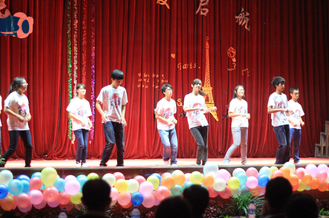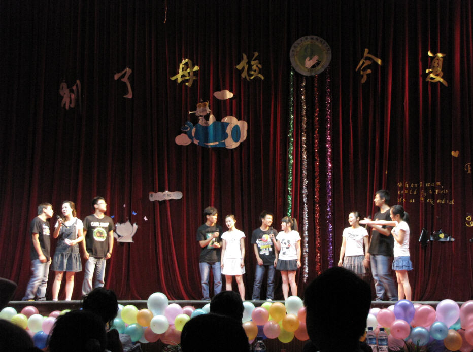 最后,学院领导和班主任一同上台和演出同学们合影。