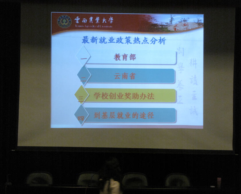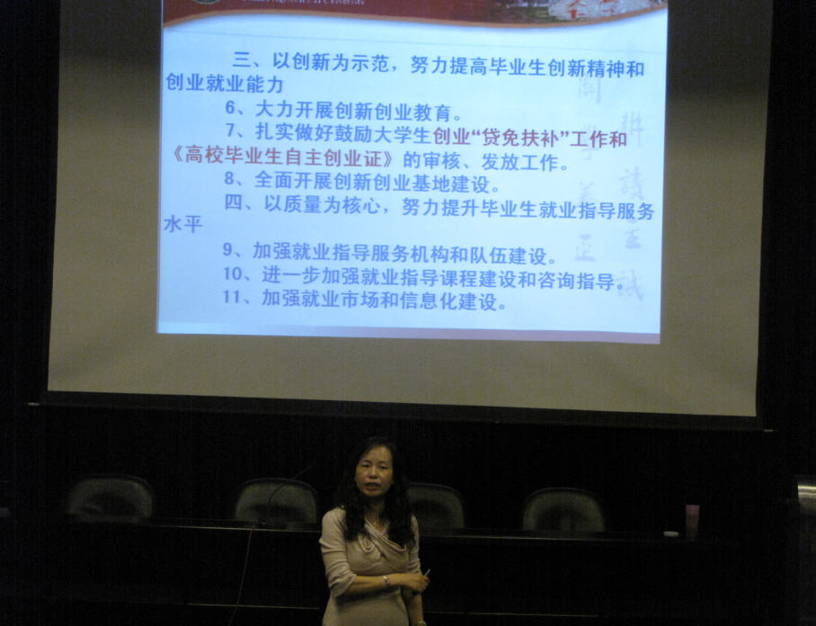近日,在yl8cc永利报告厅,就业指导中心张东艳老师应邀为yl8cc永利2012应届毕业生作了一场题为"就业政策热点分析及常见就业应对"的专题报告。张老师从当前的就业形势、公司应届毕业生的就业途径、当前的就业政策等方面做了全面的介绍。同时现场解答同学们的相关问题。毕业生们听了张老师内容全面而精彩的报告,普遍感觉收获很大,坚定了大家自主创业和今后到基层就业的信心。大家将以更加积极的心态面对就业。