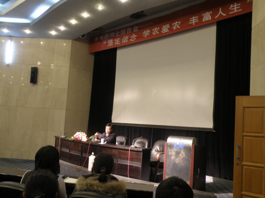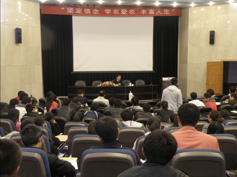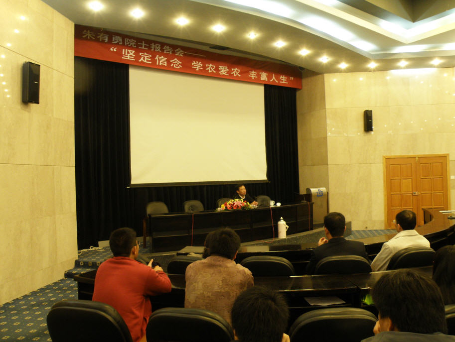 2012年3月7日(周三)晚,中国工程院院士朱有勇教授为yl8cc永利研究生作了一场题为“坚定信念、学农爱农、丰富人生”生动而精彩的专题报告,此次报告已经是朱院士为本院师生作的第二场专题报告,报告会在yl8cc永利何霞红党委副书记的主持下拉开帷幕,yl8cc永利经理李强教授,公司党委书记陶玫教授与来自yl8cc永利的研究生及教师一起聆听了朱有勇院士的专题报告。