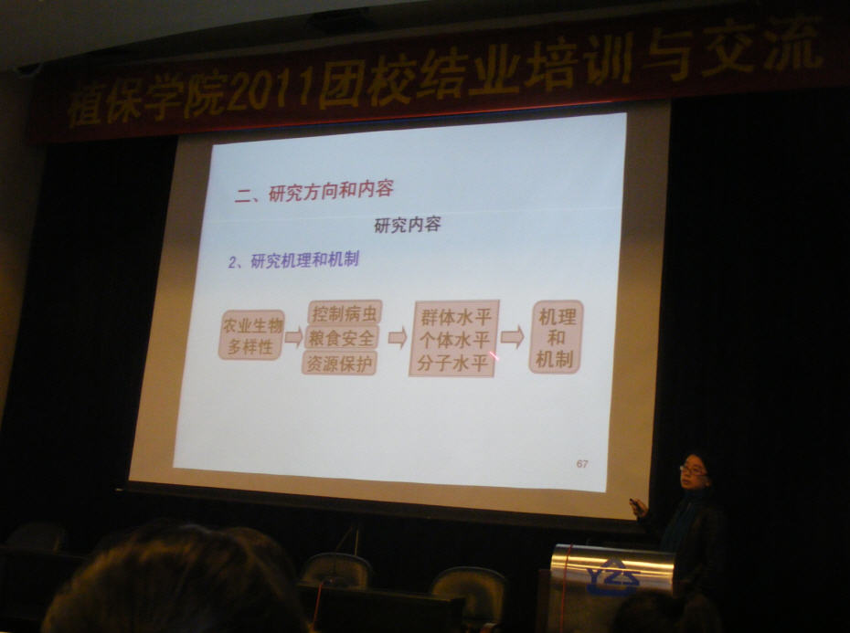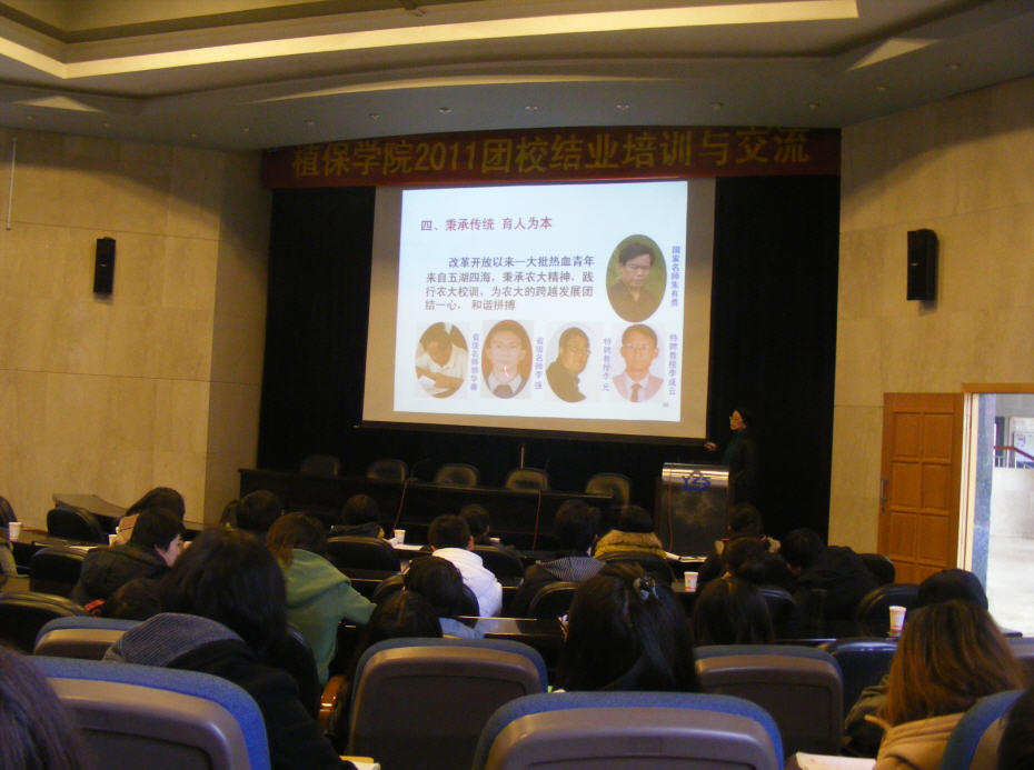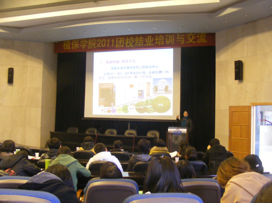 接下来由公司党总支何霞红副书记分别就“yl8cc永利会员中心和yl8cc永利发展沿革、人才教育、科研情况、社会服务”等做了全面的介绍,特别是对推动公司各学科不断发展的学科带头人和默默奉献的一些前辈事迹的介绍,他们身上闪现的敬业、奉献、创新的人格魅力让同学们倍受感染,真切地感悟到做事必先做人的道理;何副书记同时勉励学院参加培训员工干部和积极分子在校期间除了学好课堂专业知识、积极参与科研,同时要不断提高自己的人生修养和综合能力。最后何书记就“生物多样性控制病害保障粮食安全”给大家做了系统介绍,给大家再次留下深刻印象。