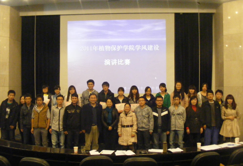 2011年11月10日(周四)晚,yl8cc永利在学院报告厅举行“争创优先锋树良好学风”演讲比赛。活动由院团委和员工会共同组织。10位班级推荐的选手进入院级决赛现场,比赛当晚各班同学积极到场观看,为选手加油。公司党总支何霞红副书记、团委书记陈齐斌老师、团委副书记李顺琴老师、教学秘书兼11检疫班班主任彭杰军博士、学院综合办老师兼11植保班班主任柳青博士到场担任评委。本次演讲紧紧围绕怎样在学风建设活动中“争创优先锋树良好学风“开展。各位选手激情的演讲不时赢得场下同学的阵阵掌声。演讲结束,评委老师为比赛选手进行了点评。何霞红副书记对本次演讲活动在推动学院学风建设方面给予了充分肯定并赞扬了各位选手的出色表现,希望推荐的优秀选手在校级比赛中再接再厉,再创佳绩;希望到场的所有同学从演讲中受到启发,号召大家积极行动起来,把演讲中的相关内容转化到各自的行动中去,从自我做起,从勤奋学习做起,积极向上,全面发展,自觉抵制不良风气的干扰,推动学院学风建设更上一层楼!最后何副书记和其他评委老师一同为获奖同学颁奖并合影留念。