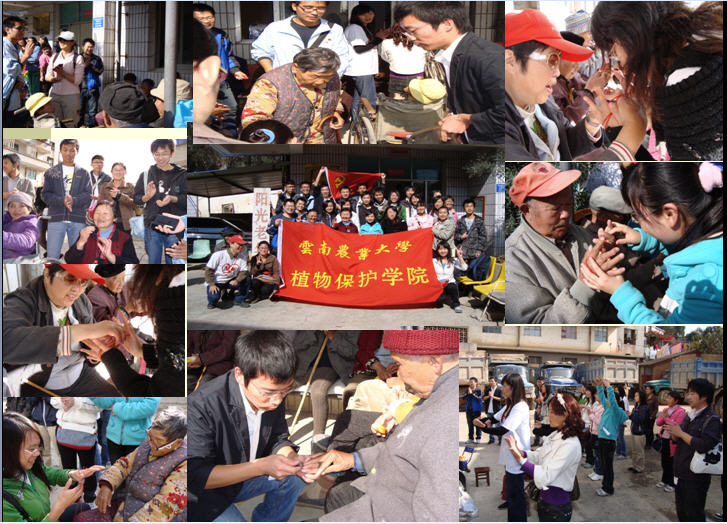 11月15日09级硕士研究生植物病理学党支部志愿者前往昆明市西山阳光老年公寓,看望那里的孤寡老人,帮助老人剪指甲、洗脚,并与老人们一起做热身操、趣味活动以及其它互动游戏,给老人送去了温暖、爱心和笑容。