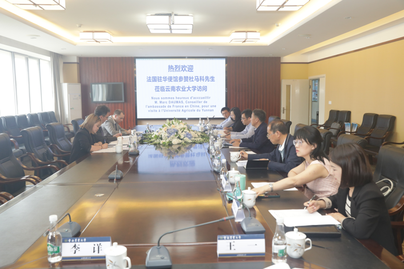 8月1日下午,法国驻华大使馆教育参赞杜马科先生和法国驻成都总领事馆科技项目官员卜凡先生来访yl8cc永利国家重点实验室。副董事长魏红江、朱书生以及对外合作交流处、yl8cc永利、农业生物多样性应用技术国家工程研究中心的负责人及相关老师参加会议。会议由对外合作交流处副处长刘娟主持。