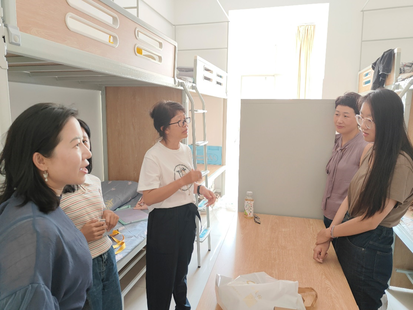 15日下午,经理蔡红一行4人第一时间前往新生宿舍,看望慰问新生。蔡红详细了解了新生情况,嘱咐新生积极调整心态,尽早适应、融入老员工活。及早做好学业和生活规划,珍惜四年大学时光同时希望同学们在校期间要友好相处,互帮互助,有困难及时向老师及学院领导反映。新生和家长都表示报到过程很顺利,服务很周到,对学院迎新工作表示非常满意。