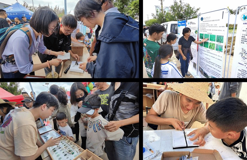 “摸鱼节”开始后,小院团队师生通过展板和宣讲向过往市民讲解了农业环保保护、农业面源污染和生物多样性保护等知识,提高社区村民对农田杂草种识别能力的同时,也加强了田间合理施用农药及化肥的意识。为使本次活动更具趣味性和参与度,师生们还开展了昆虫标本展出及蝴蝶标本制作等多样的科普活动,市民特别是中小员工积极参与到蝴蝶标本的制作当中。