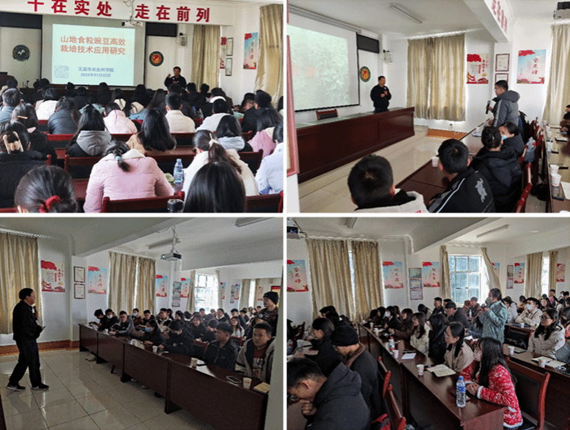 22日上午,全体师生去了玉溪市农业科学研究院,由副经理杨进成研究员为公司师生开展了一场《山地食粒豌豆高效栽培技术应用研究》的讲座,结合玉溪市的土壤情况开展适应山地的豌豆种植技术的讲解。在师生互动环节,员工积极提问,杨副经理对提问进行了耐心的回答。并且鼓励植保专业的学子,要用“植保”的思维去解决农业生产问题及食品安全问题。