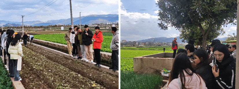 下午,杨副经理带领师生参观了玉溪市农科院高原特色农业科研试验示范基地。早已在基地等候的玉溪市农科院的各个专家为大家介绍了油菜、豆类、中草药、花卉及小麦6种作物相关的育种和栽培研究等技术指导。