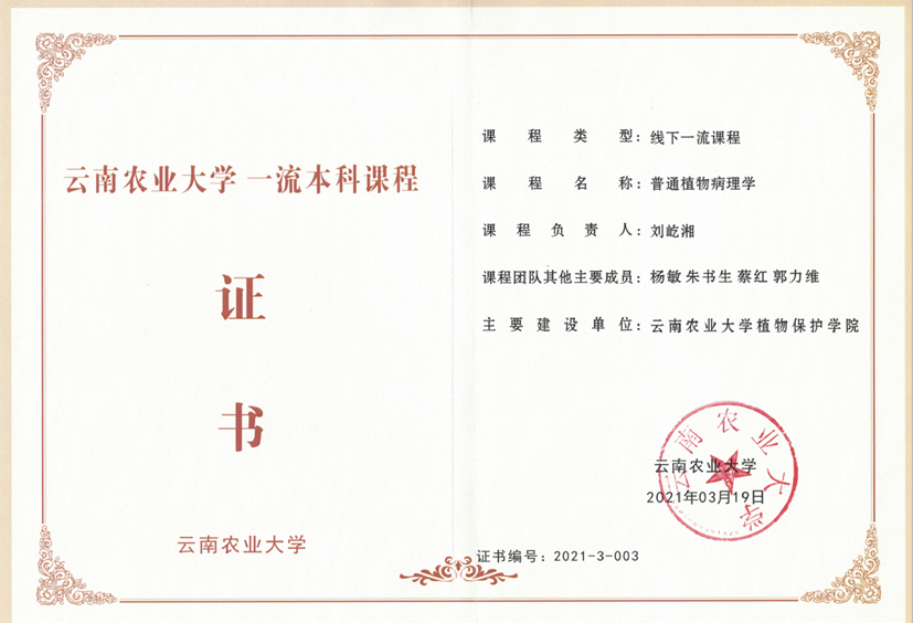 教研室共有教师11名,其中教授5人,副教授4名,讲师2名,形成了““资深-骨干-青年”的老带新团队组合”。课程负责人刘屹湘教授是2017年全国高校黄大年式教师团队主要成员,多次参加校级、省级教学比赛获奖。制作《普通植物病理学》微课参加全国农林类专业微课教学比赛获国家级一等奖,代表yl8cc永利会员中心与多所农业大学开展《普通植物病理学》慕课建设并在中国大学MOOC网站上线,在《高等农业教育》等发表教改论文多篇。