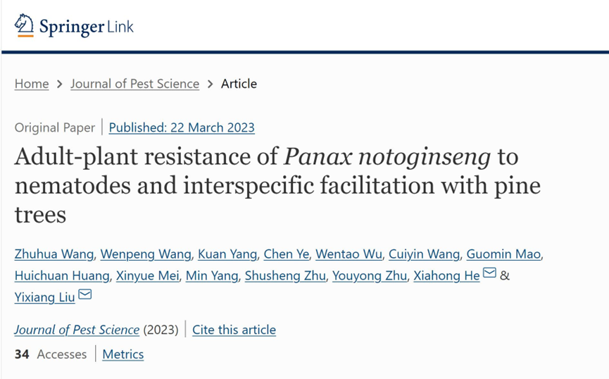 Pest Science在线发表了yl8cc永利线路检测林下三七团队题为“Adult?plant