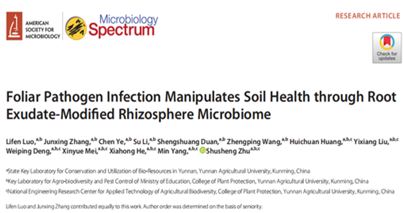 Spectrum(IF=9.043)发表了题为“Foliar
