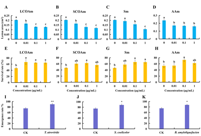 amyloliquefaciens能显著提升三七出苗率(图5I-K)。
