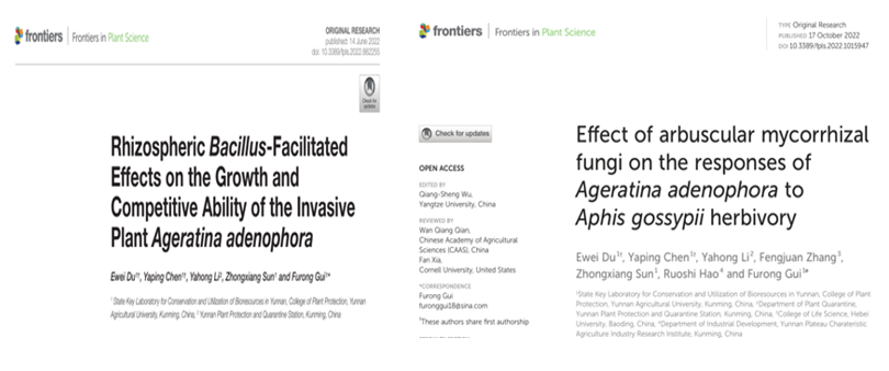 该研究得到了云南省绿色食品重大科技专项(生物灾害应急防控关键技术研究与应用,2019ZG00910)以及国家自然科学基金(31660546)、国家重点研发项目(2021YFD1400200)和云南省教育厅科学研究基金研究生项目(2022Y224)的资助。yl8cc永利线路检测博士研究生杜鄂巍、陈亚平为论文的共同第一作者;桂富荣教授为通讯作者。