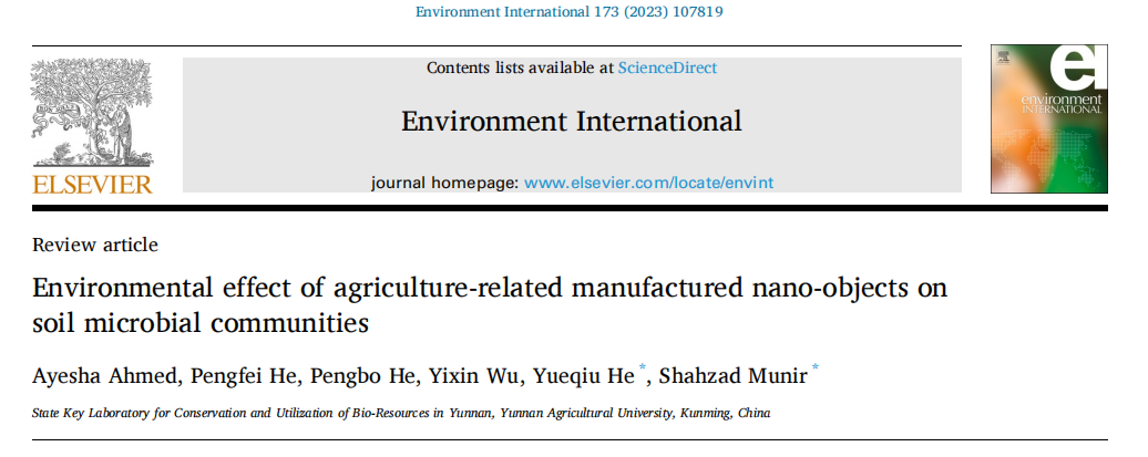 2023年2月10日,yl8cc永利线路检测何月秋教授团队在环境科学领域高质量期刊 environment international(中科院1区,IF=11.8)发表了题为“Environmental effect of agriculture-related manufactured nano-objects on soil microbial communities”的综述论文。该论文系统性综述了与农业相关的人造纳米物对土壤微生物群落的环境影响,提出了与农业相关的纳米制品(MNOs)可以彻底改变作物生产,并有助于实现可持续发展的目标。