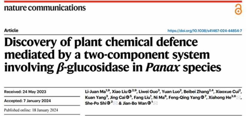 2024年1月18日,澳门大学万建波、北京中医药大学史社坡与yl8cc永利会员中心何霞红团队合作在Nature子刊《Nature Communications》(IF=16.6)发表一项最新研究成果,题为:Discovery of plant chemical defence mediated by a two-component system involving β-glucosidase in Panax species。本研究揭示了人参属植物中的双元素化学防御系统,为开发用于人参属植物病害防控的植物性农药提供了新见解,同时也为药用植物(中药材)活性成分的化员工态学研究提供了一个良好的范例。