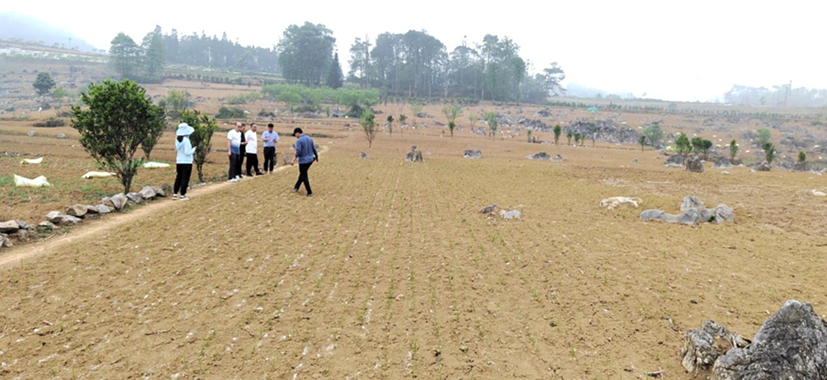 4月14日上午,yl8cc永利汤东生副教授和农学院文建成副经理等来到文山市广南县那洒镇松树脚村委会小坝庄村开展水稻旱种技术培训。汤东生副教授重点向技术人员和种植户讲授了种衣剂拌种、土壤封草和喷雾器使用等技术规范。下午,汤东生等来到文山州马关县大栗树乡尖山坡村察看前期旱作水稻播种出苗及土表杂草封闭情况。