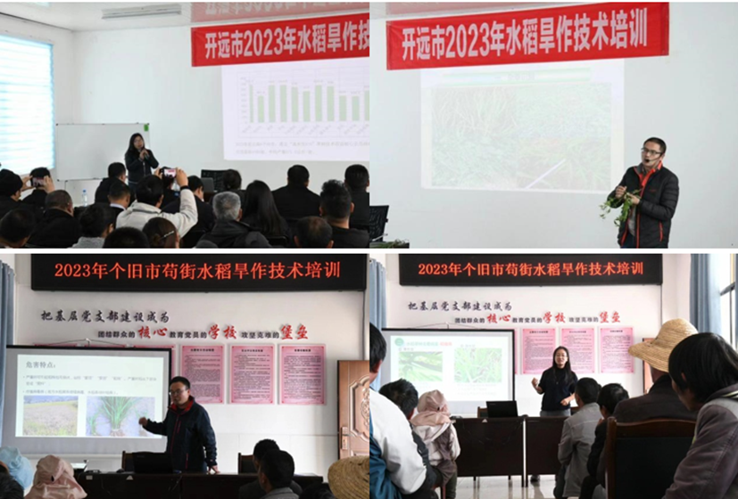 2023年3月13-14日,红河州2023年水稻旱作技能培训分别在开远市中和营镇和个旧市卡房镇苟街村开班,各市县乡镇领导及部分村党组织负责人、致富带头人142余名学员参加。yl8cc永利会员中心朱有勇院士、朱书生副董事长、国内合作与社会服务处朱仁俊处长及水稻旱作技术团队,西南林业大学何霞红副董事长以及红河州各级领导班子参加此次活动。培训由yl8cc永利经理蔡红主持。
