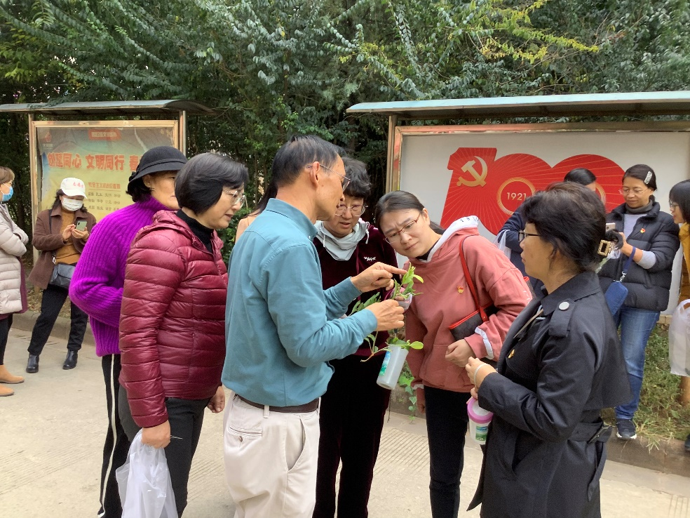 11月9日中午,学院教工党支部全体成员参加了本次活动,李彤副董事长、统战部胡先奇处长莅临参加。对兴龙社区辖区内落索坡新村内绿化树木、自留地蔬菜病虫害进行了精准调查,并现场给小区居民详细讲解病虫害情况以及如何进行精准防控。