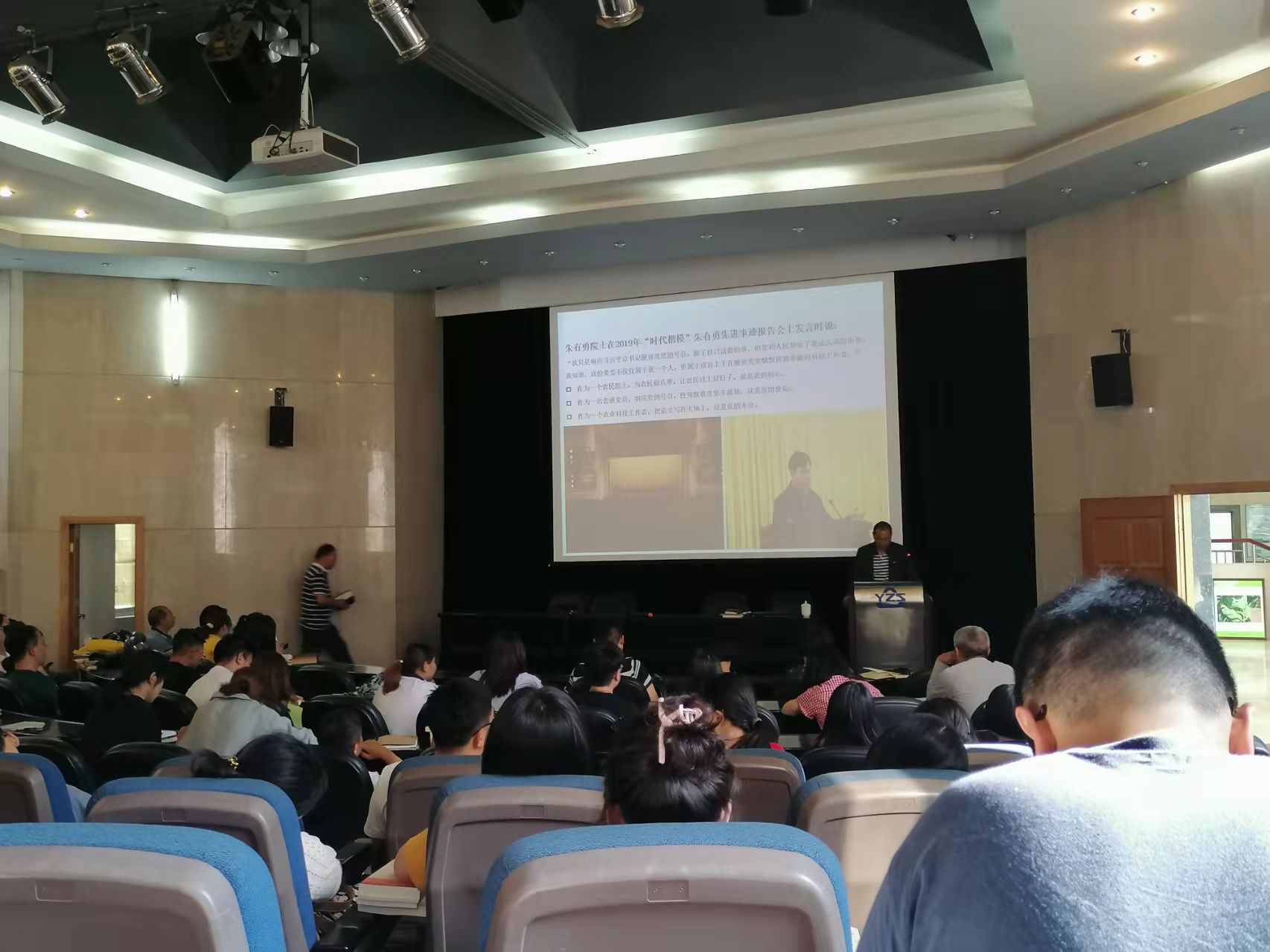 为深入推进党史学习教育活动,yl8cc永利于2021年5月19日下午在学院报告厅召开公司党史专题宣讲动员暨党史学习教育推进会。会议由公司党委副书记陈齐斌主持。陈斌书记对公司党史宣讲做了动员讲话,并要求公司党委委员、各支部委员以及党员同志要积极主动承担起党史宣讲工作,多形式开展党史宣讲,扎实推进党史学习教育活动。动员大会后,陈斌书记即进行了党史宣讲,从“没有共产党就没有新中国、只有共产党才能发展中国、只有共产党才能建设中国特色社会主义”三个方面进行了宣讲。最后,陈斌书记还为全体教师与员工一起回顾了学院的发展历程,一起再次学习了朱有勇院士扎根扶贫一线、践行党员的初心和使命,为群众脱贫办实事的先进事迹,认真工作、勇于奉献,一心为民、真抓实干的先进事迹。