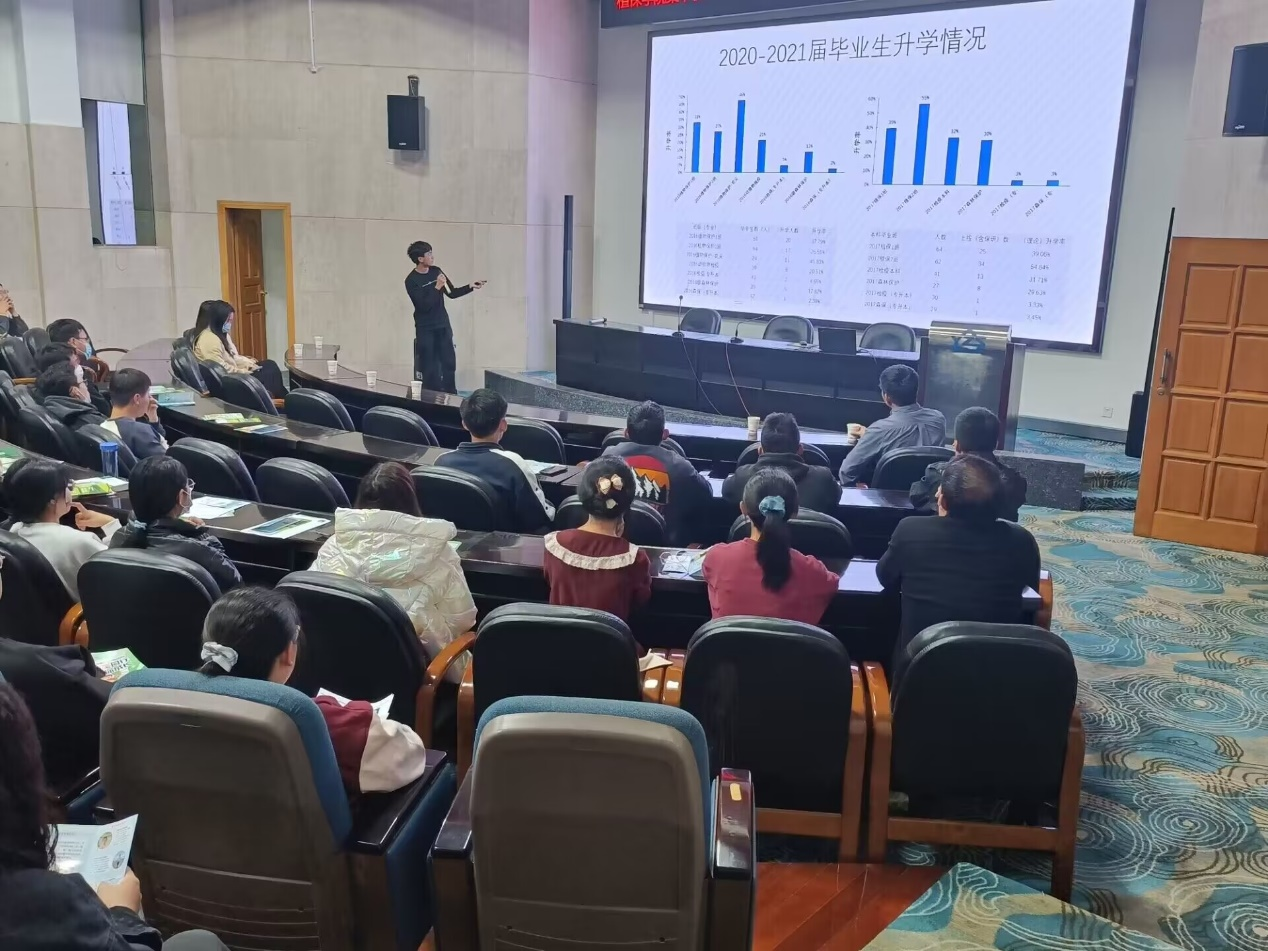 活动伊始,学院就业与指导服务中心中心付玉飞老师向在场同学详细介绍了近三年来公司同学面临的就业环境和具体的就业去向。详实的数据和图表加深了同学们对当前实际就业形势的认识。
